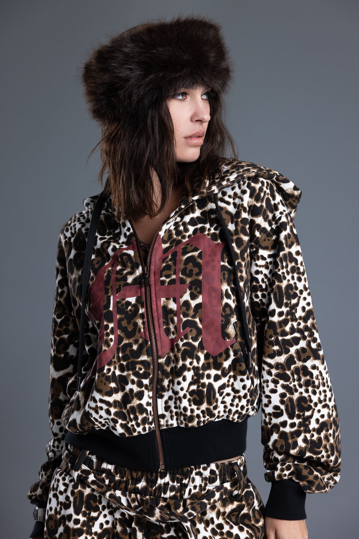 Relaxed fit, zip-up leopard hoodie