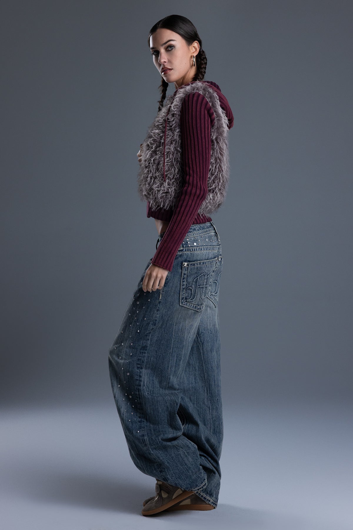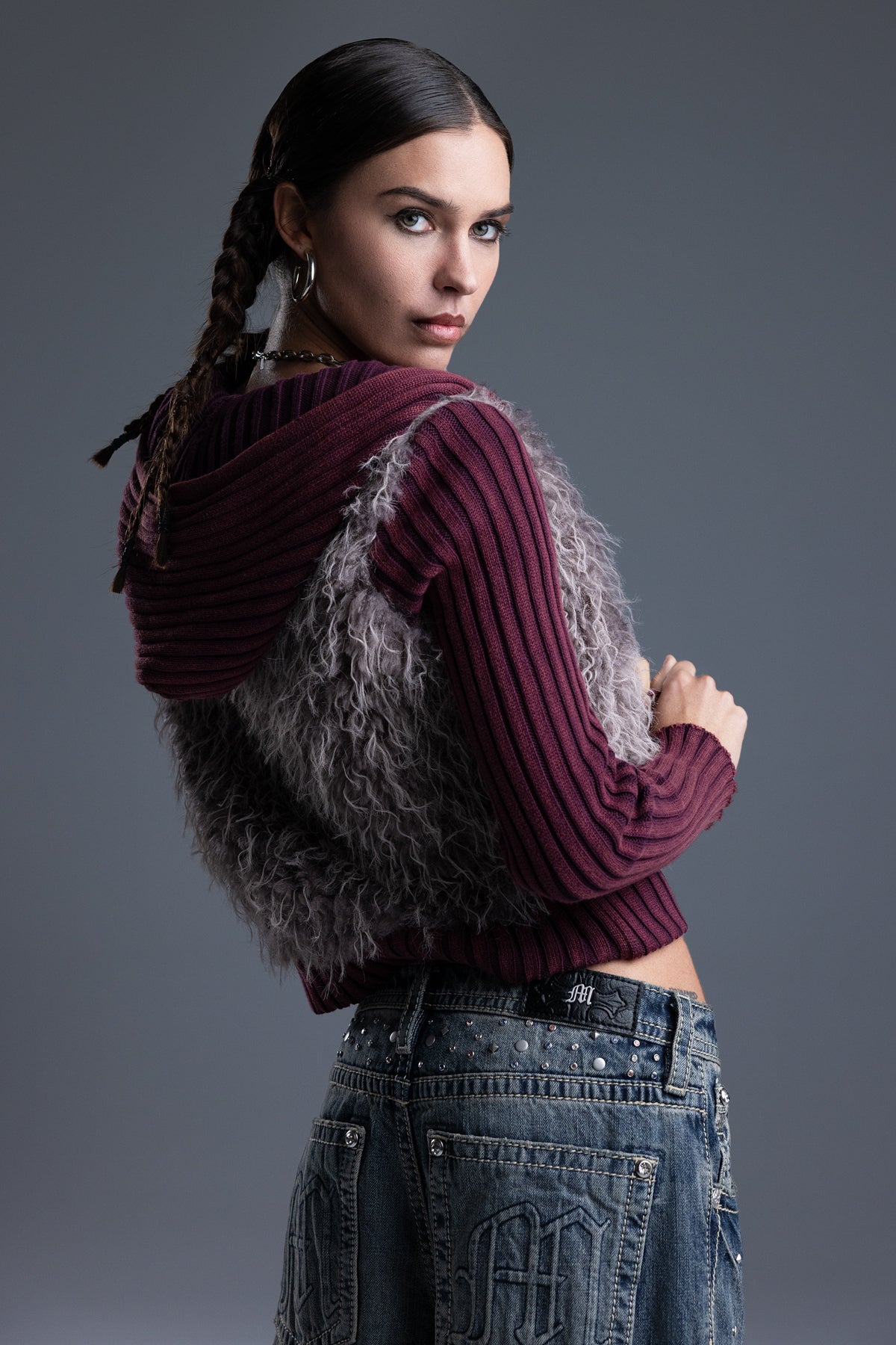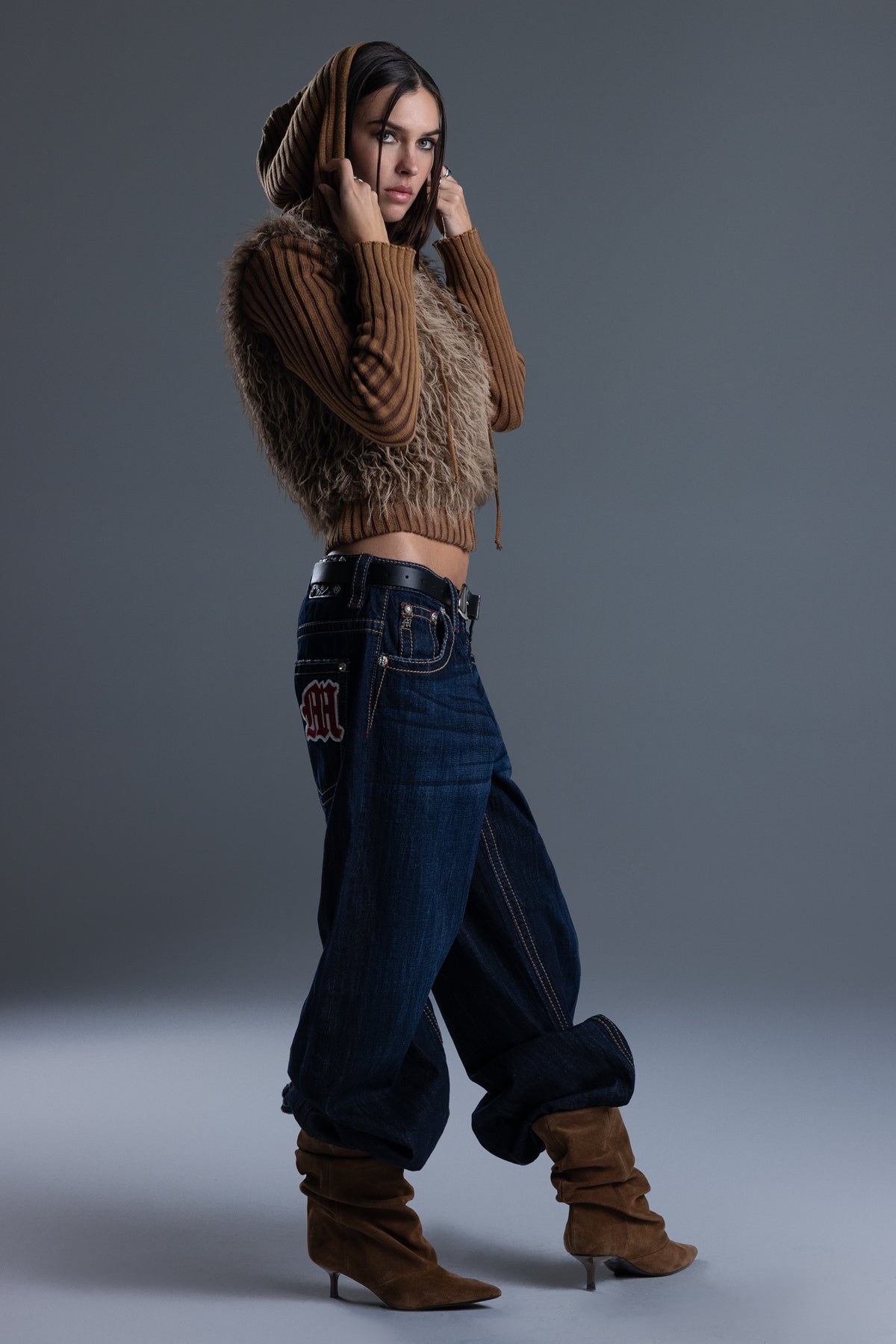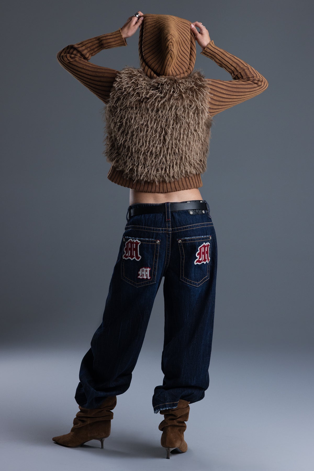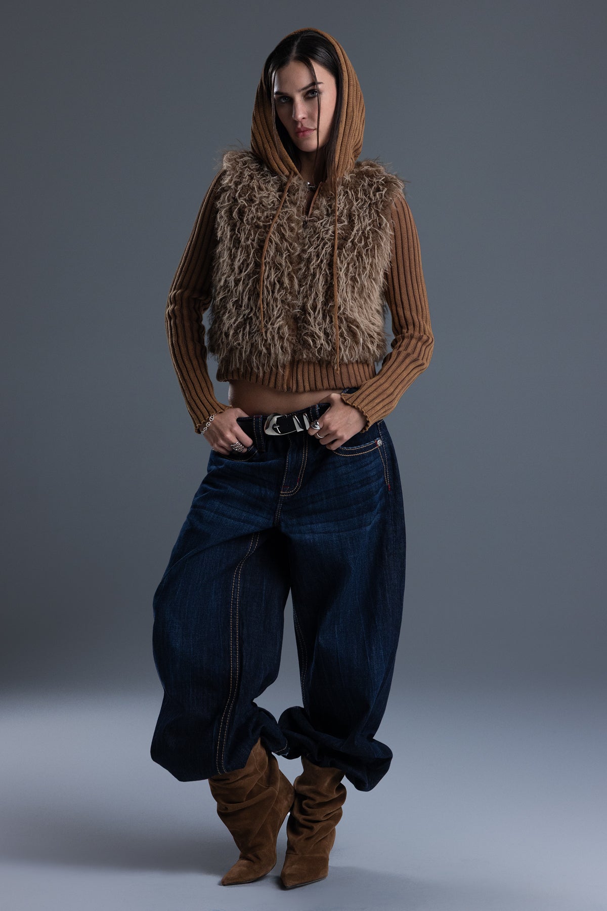 - Soft, shaggy faux fur front panel design