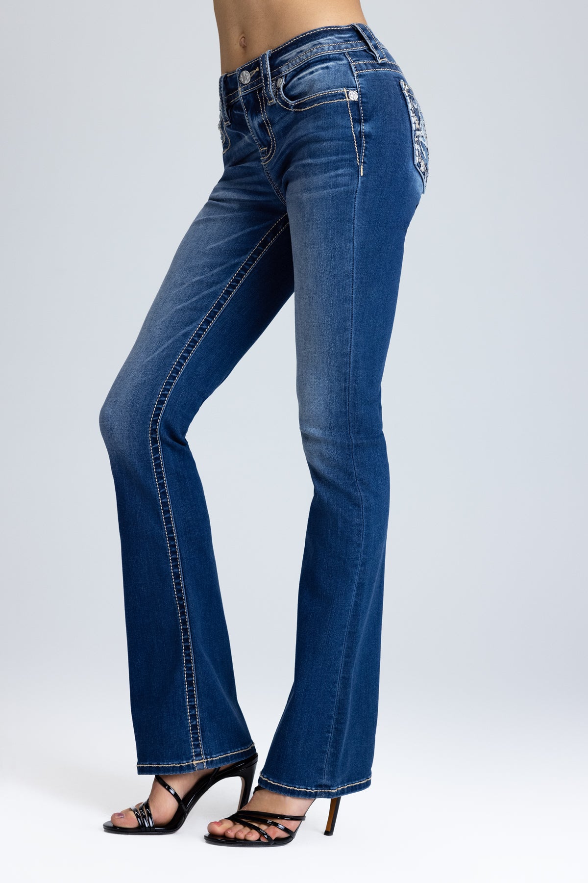 Dark-wash, mid-rise bootcut jeans
