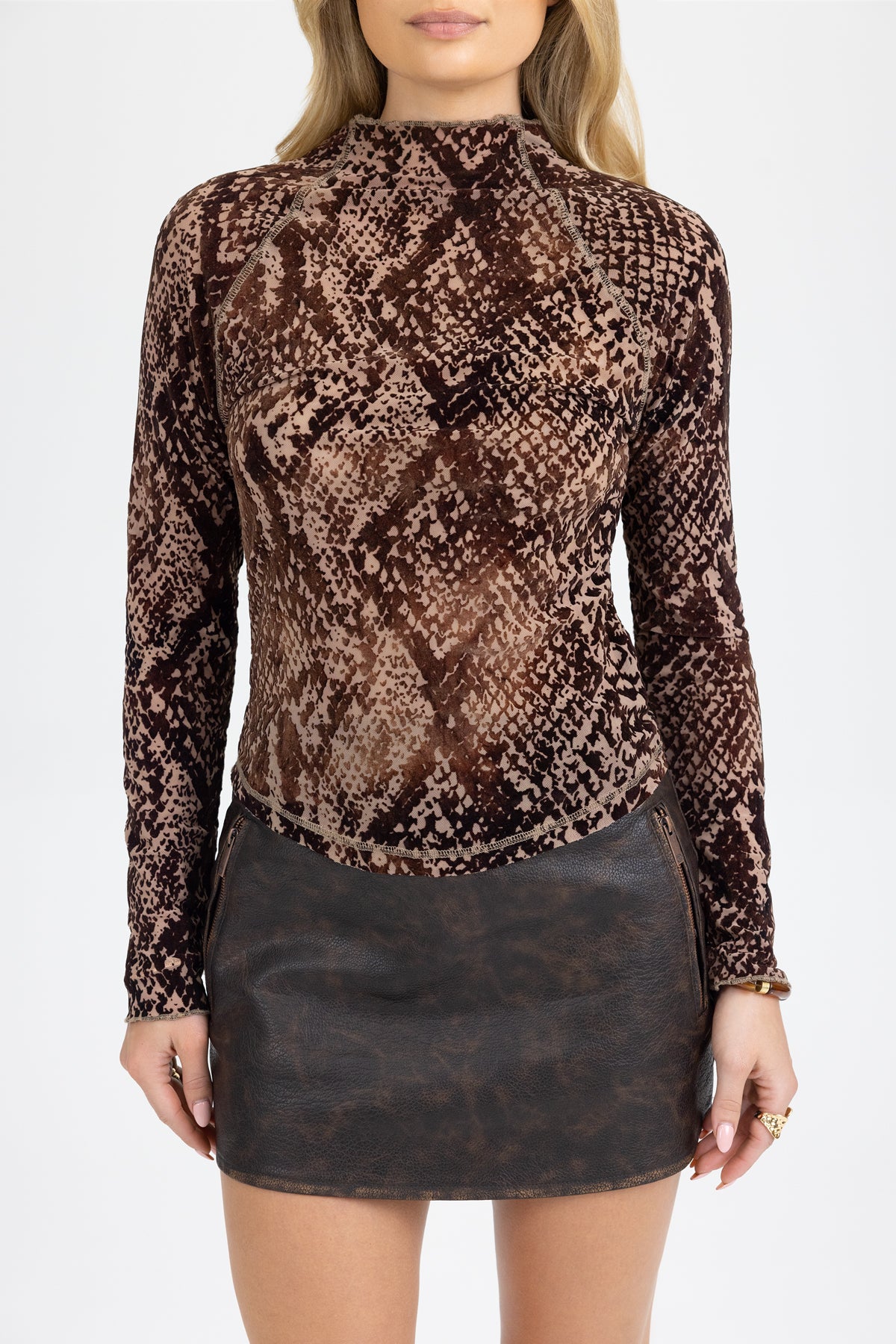 Slim fit snake print long sleeve top