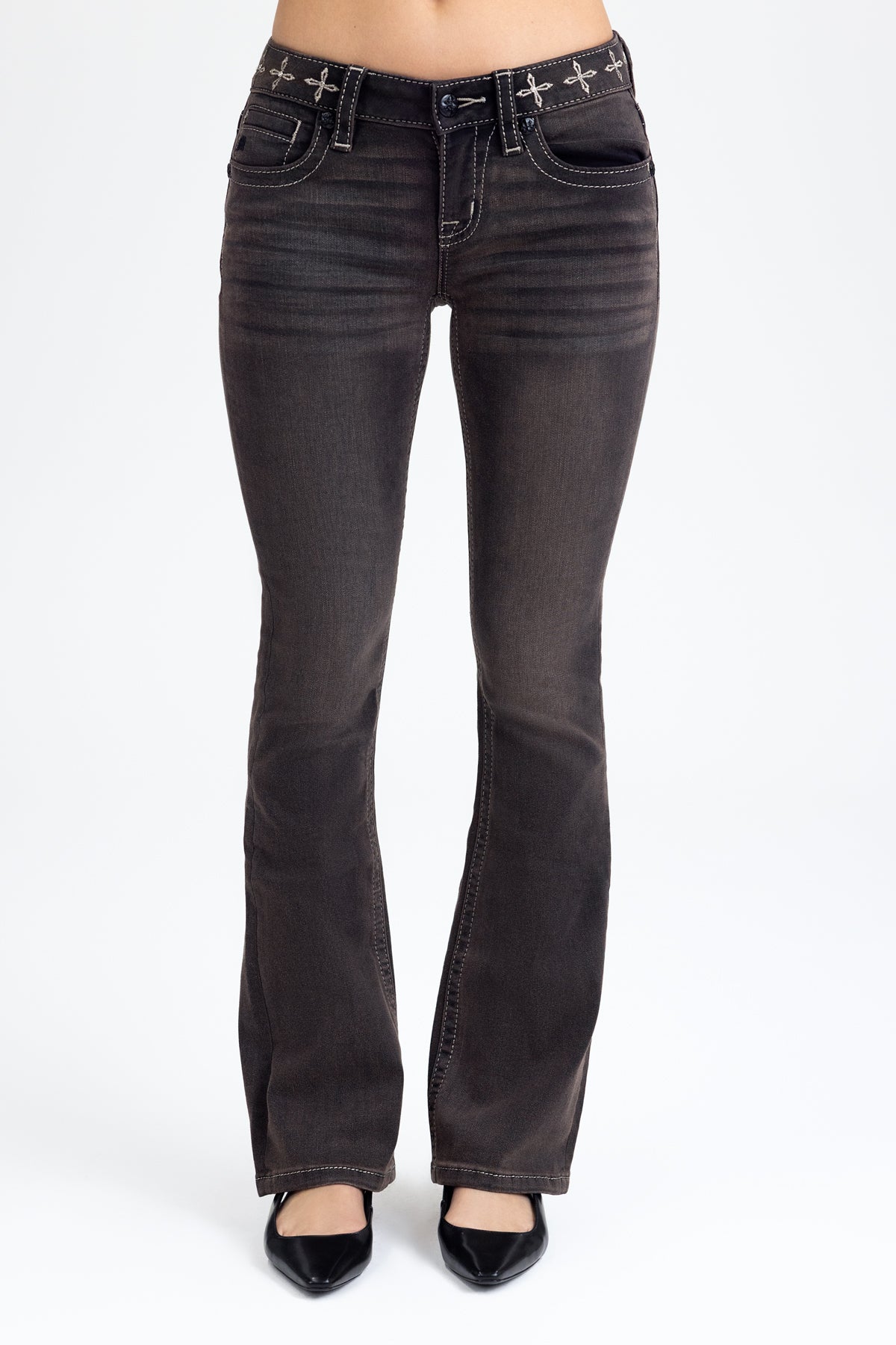 Washed finish, low-rise bootcut jeans