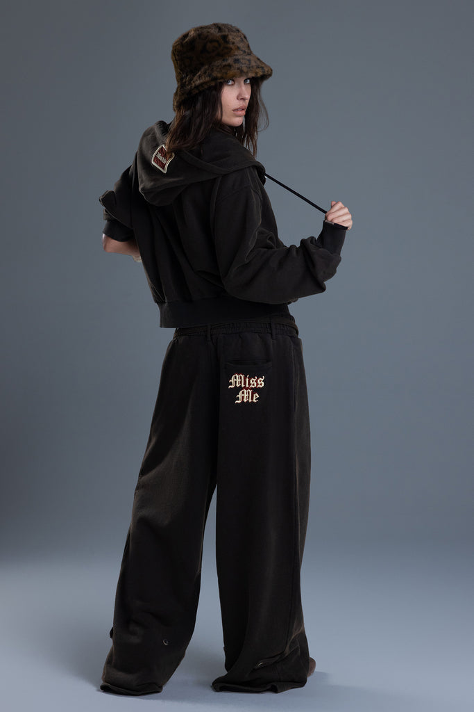 - Embroidered gothic Miss Me graphic detailing
