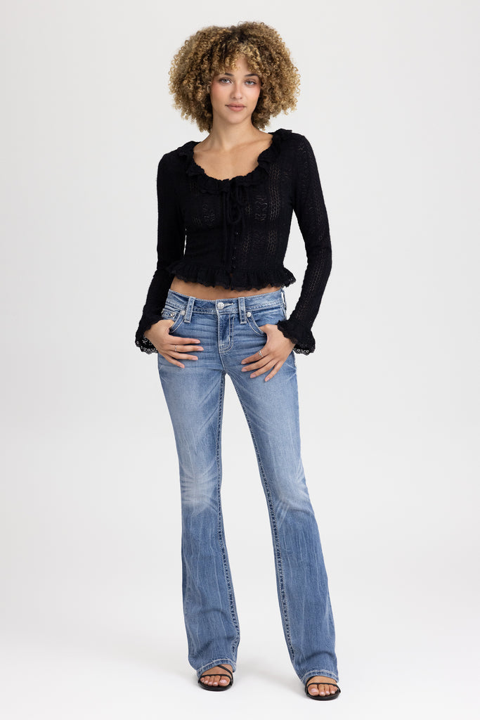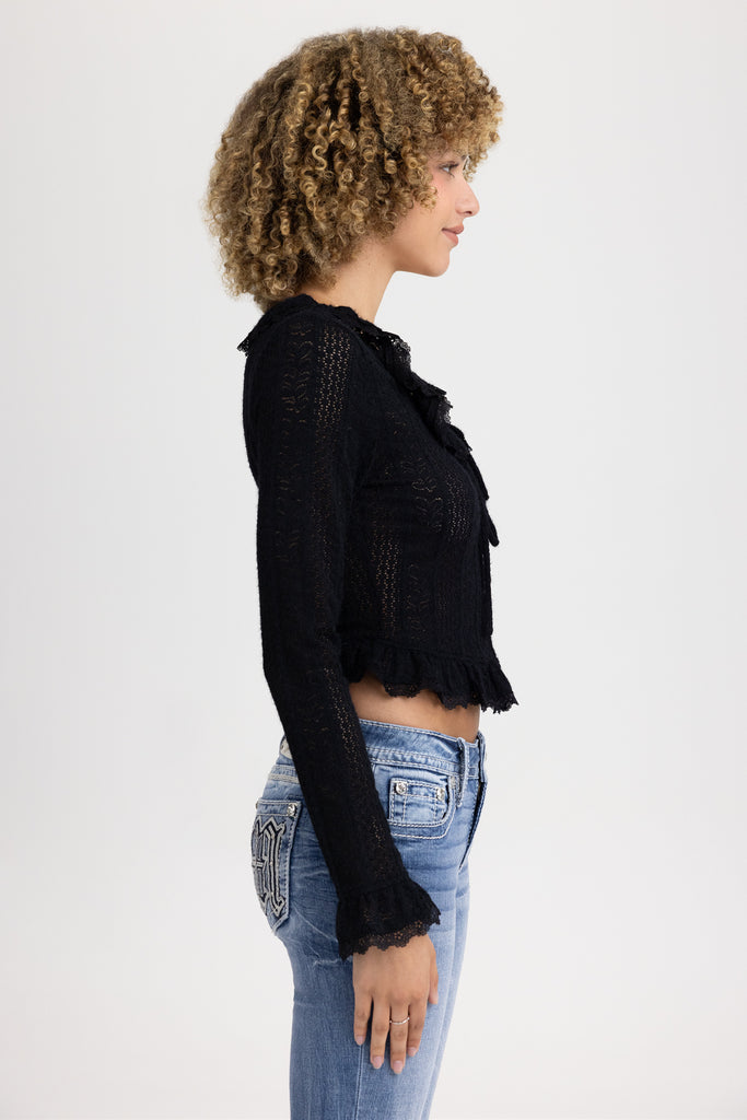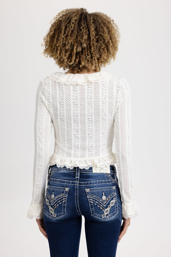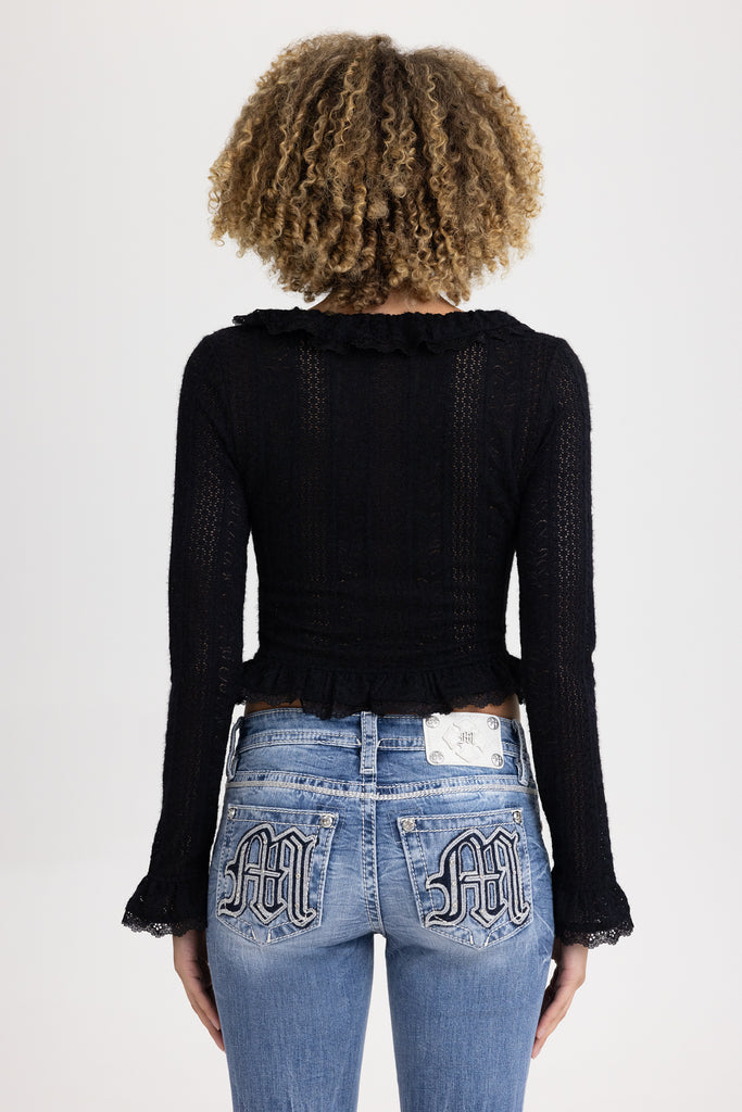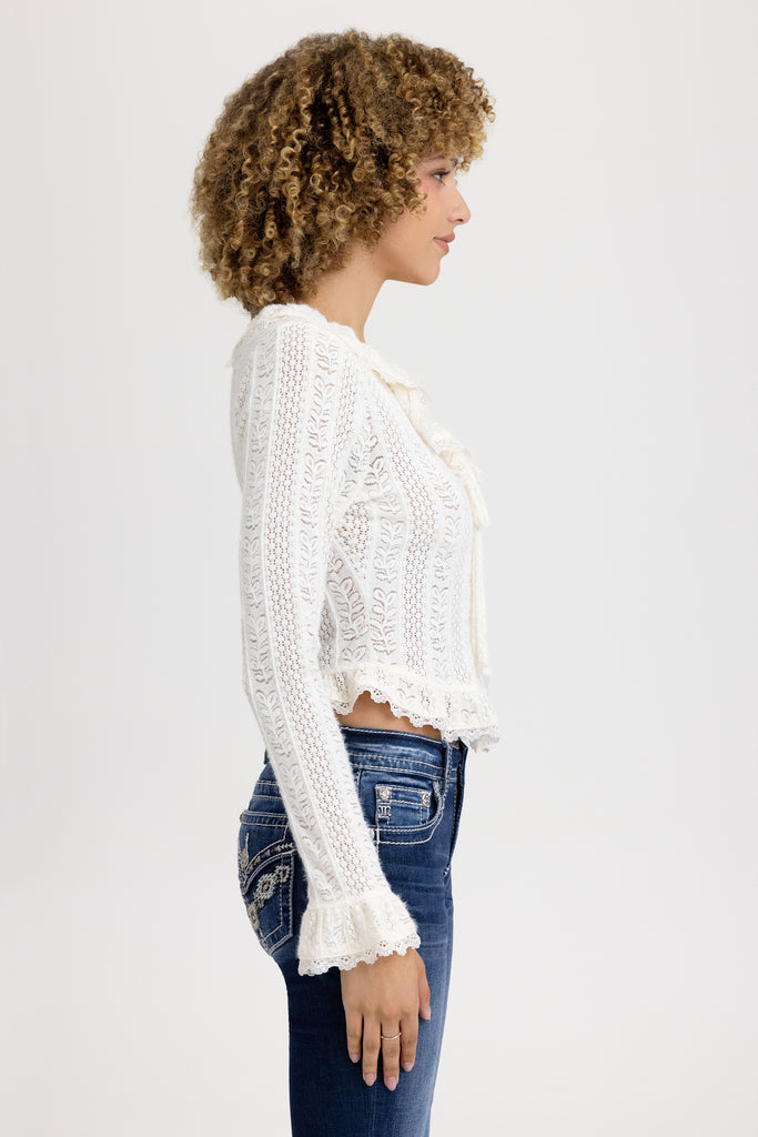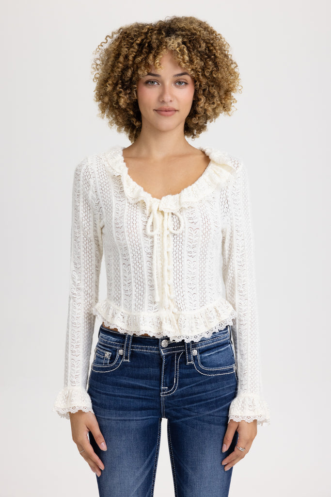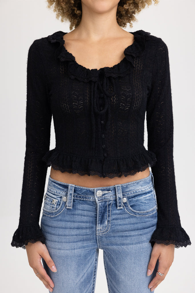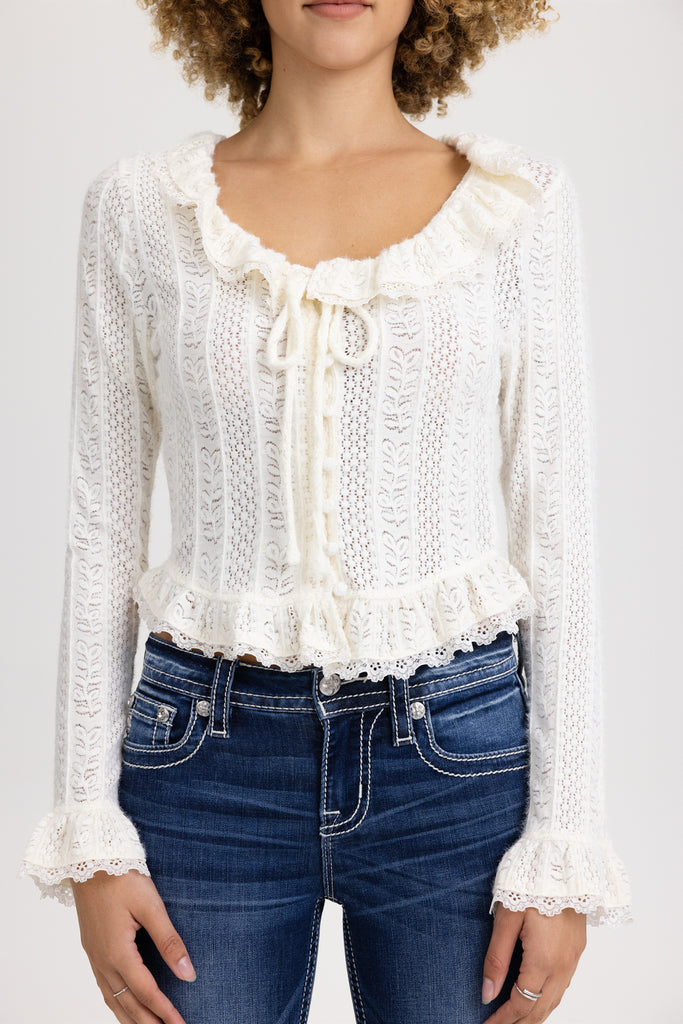 Ruffle pointelle knit top