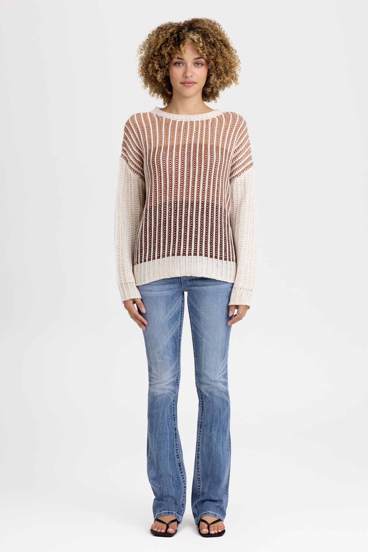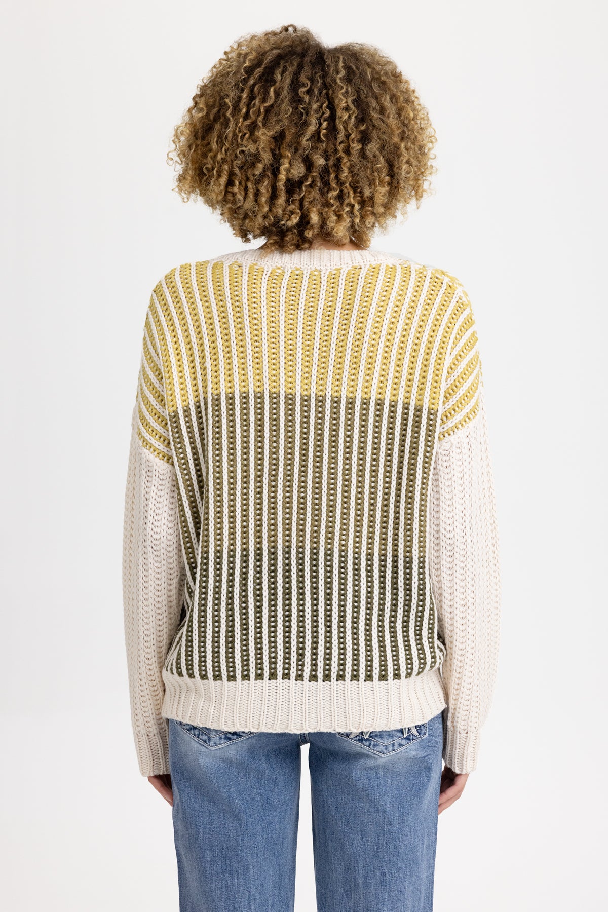 - Open-knit striped pattern