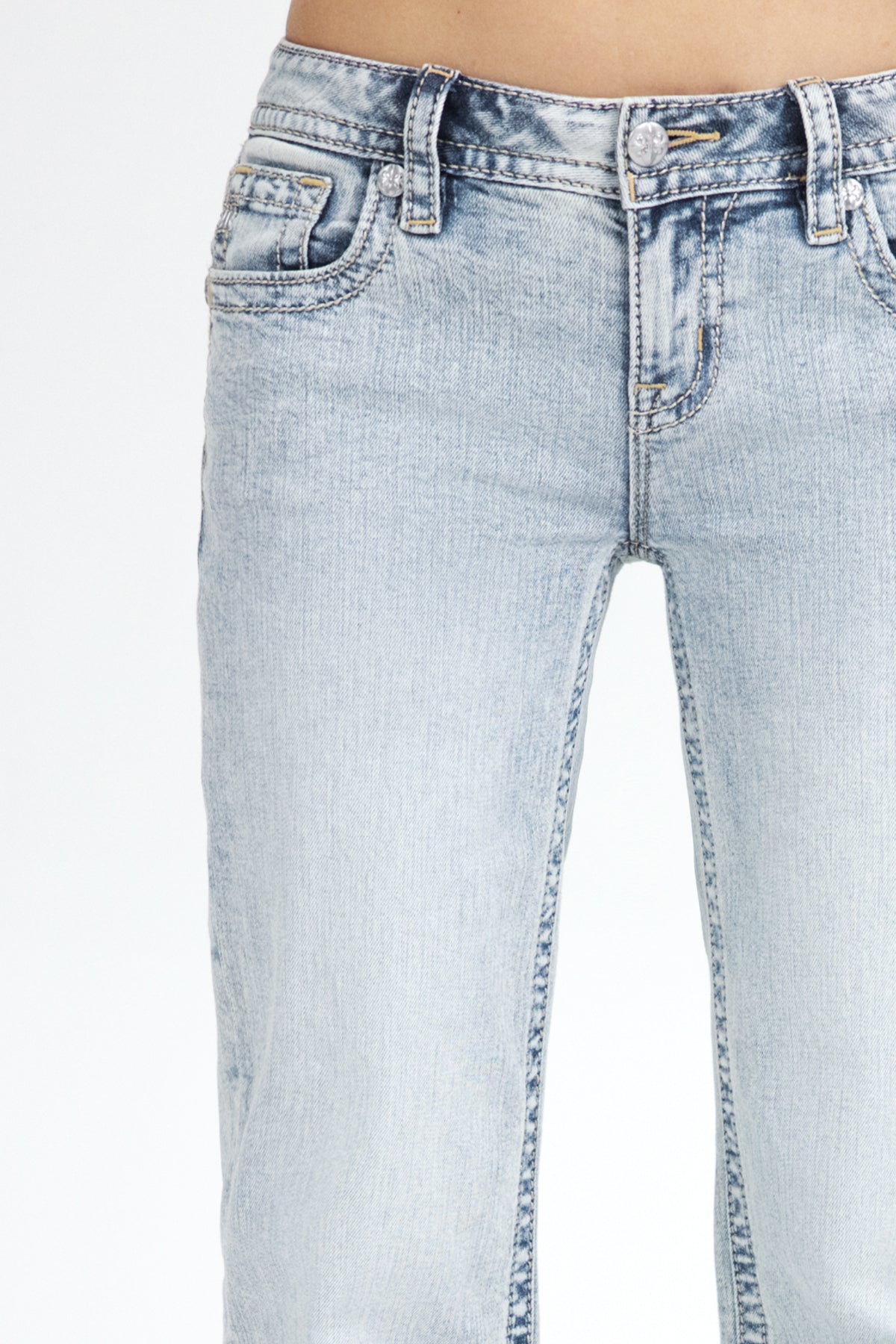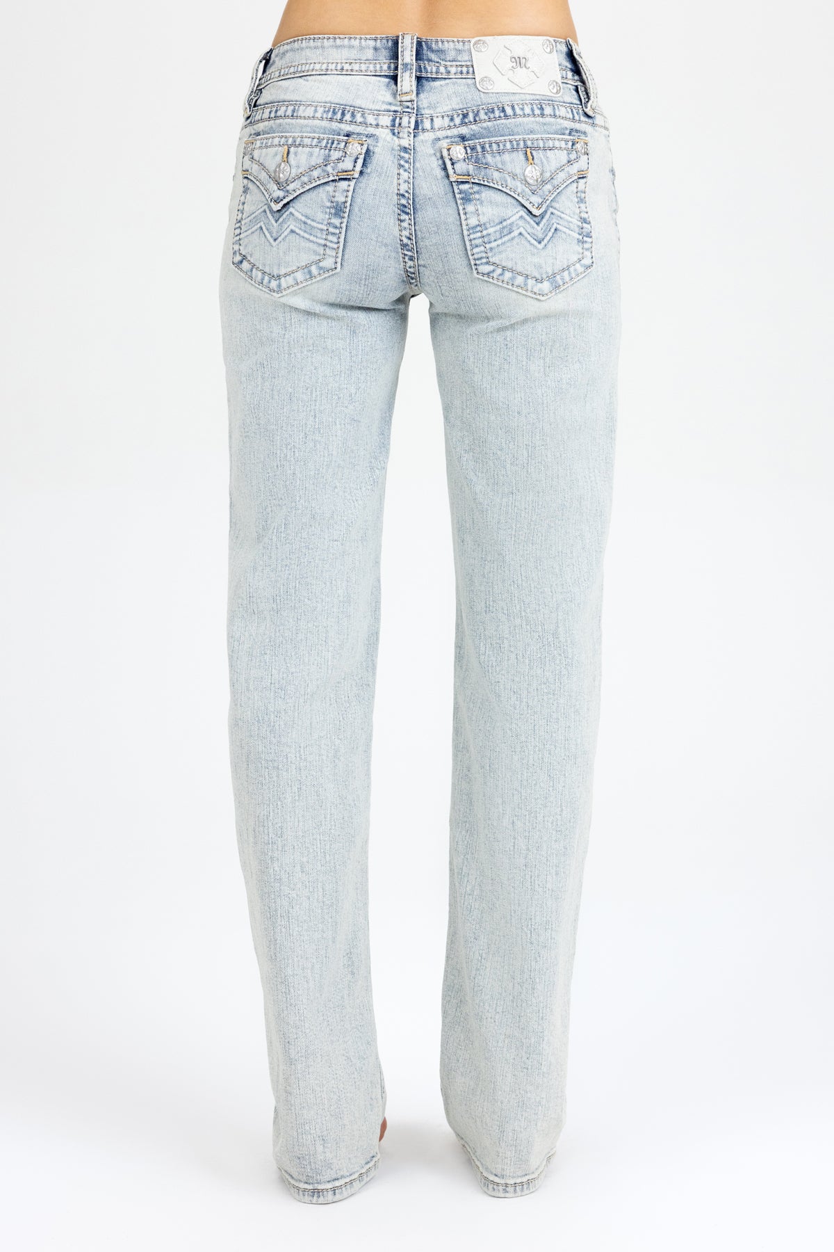 - Embossed white studded leather cross Miss Me brand patch