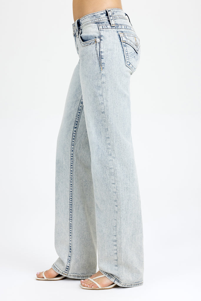Washed, low-rise slim wide jeans