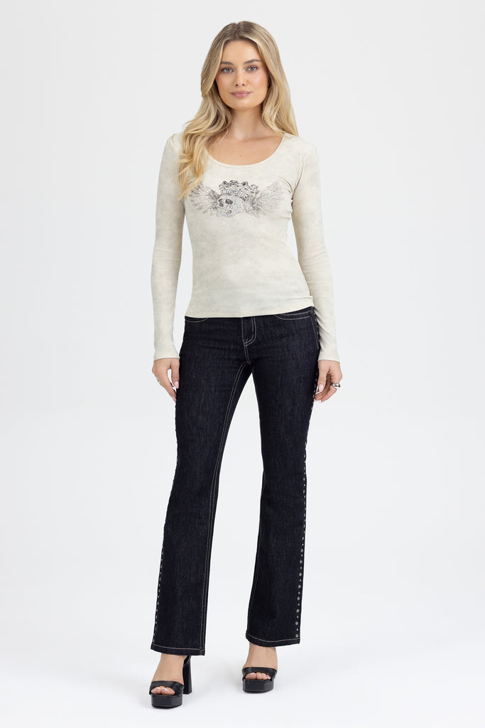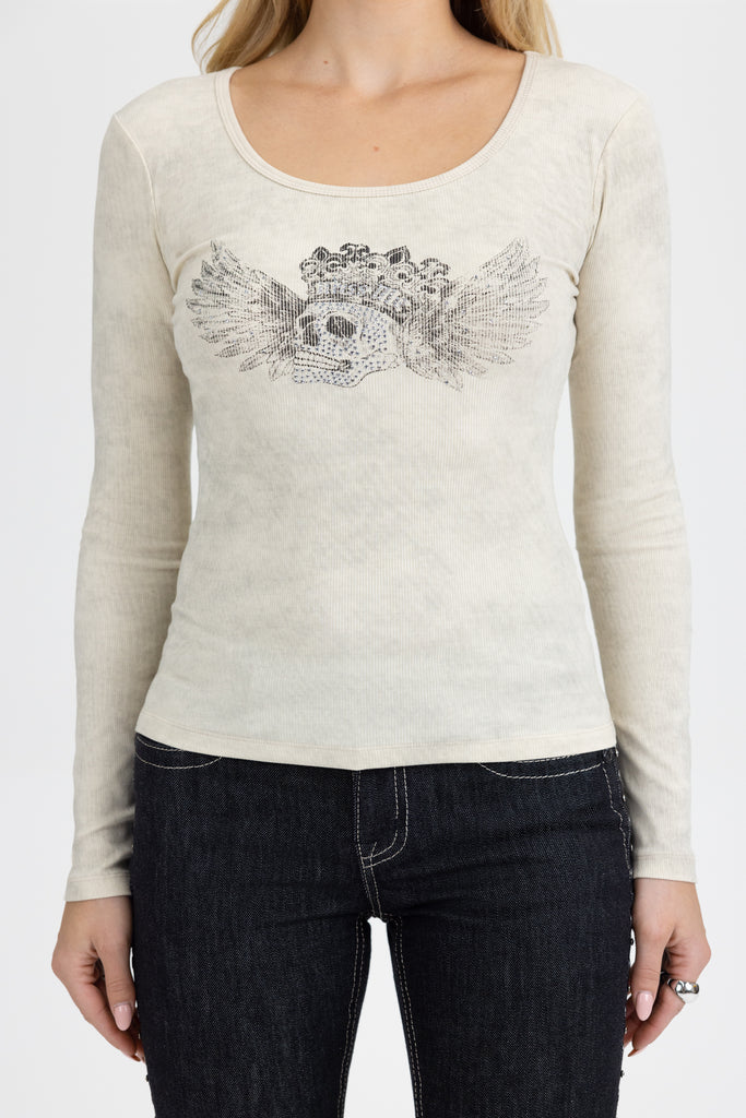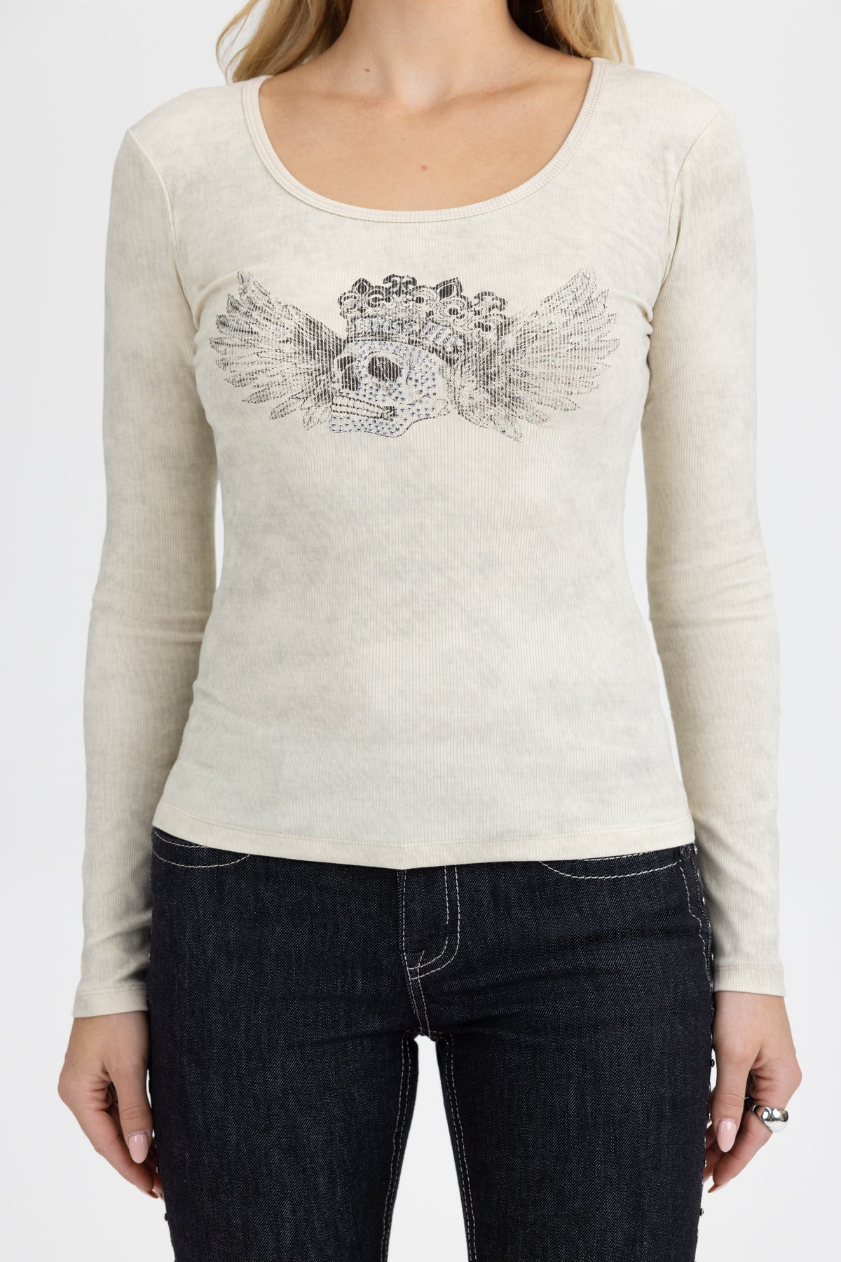 Soft ribbed knit long sleeve top