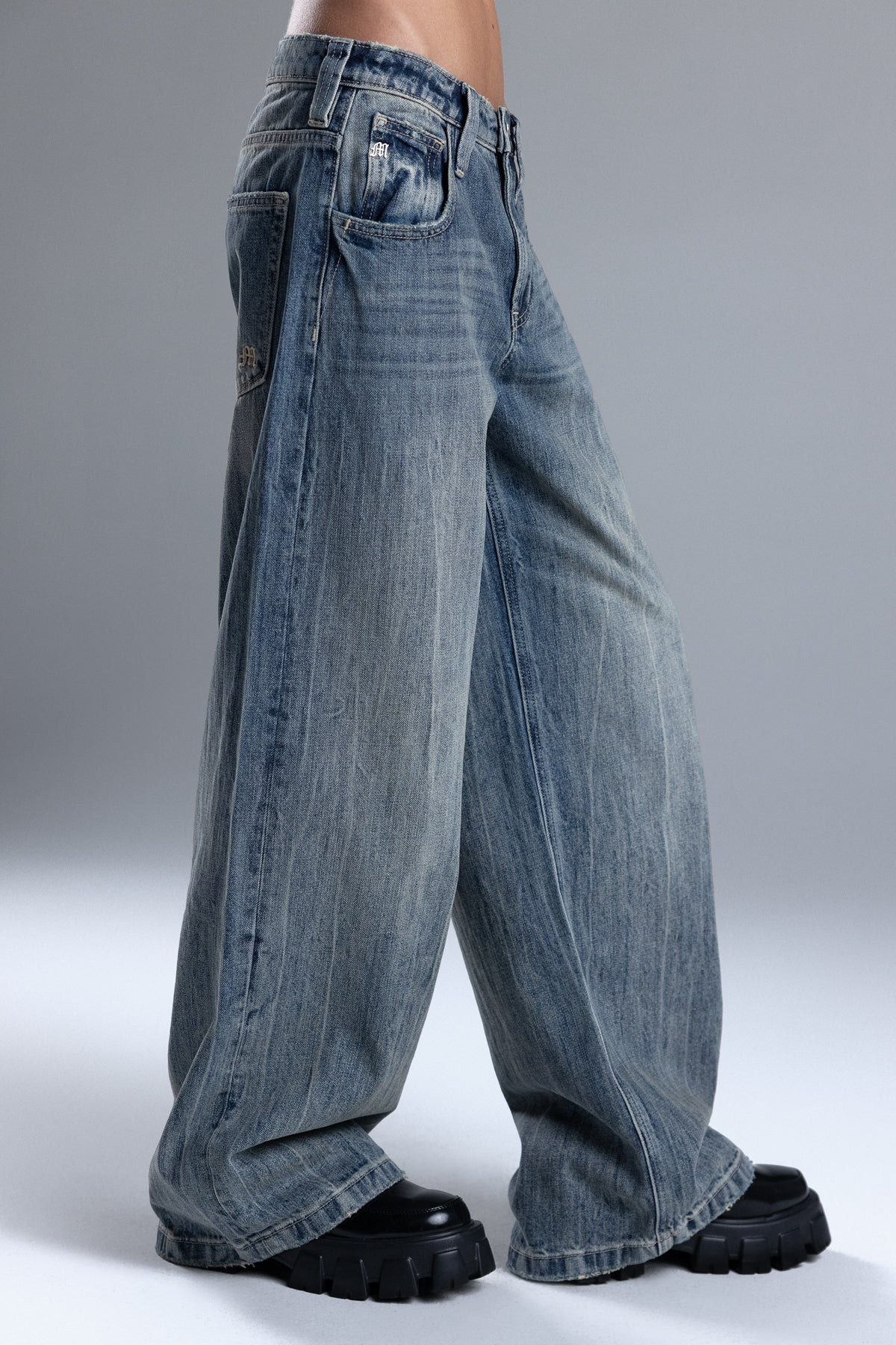 Washed, mid-rise super baggy wide leg jeans
