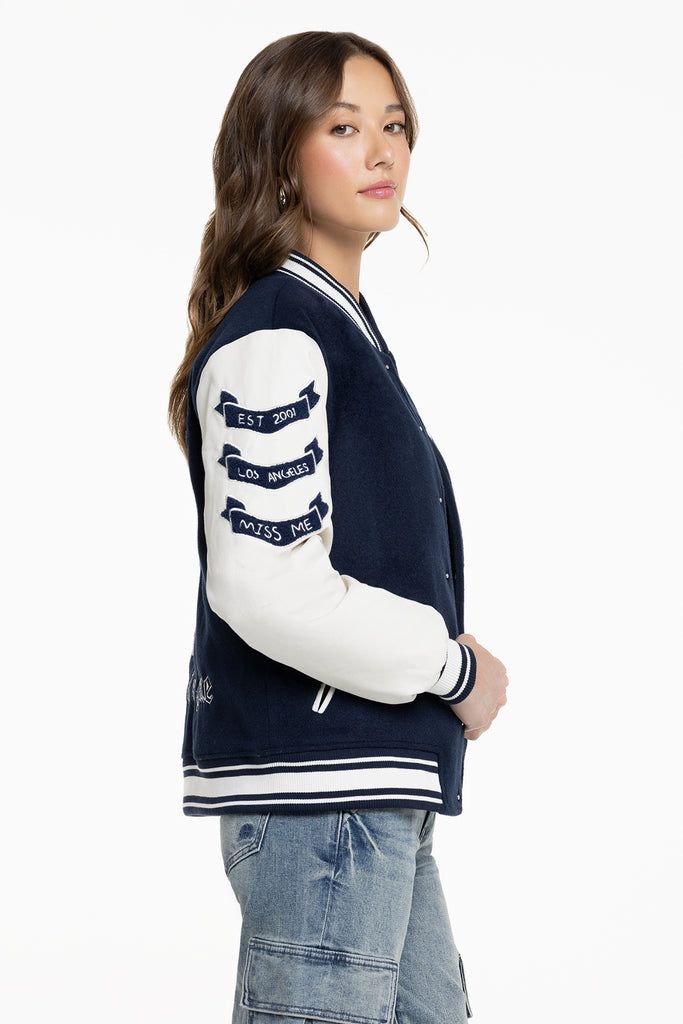 - Embroidered Sherpa accented Miss Me branding and lettering