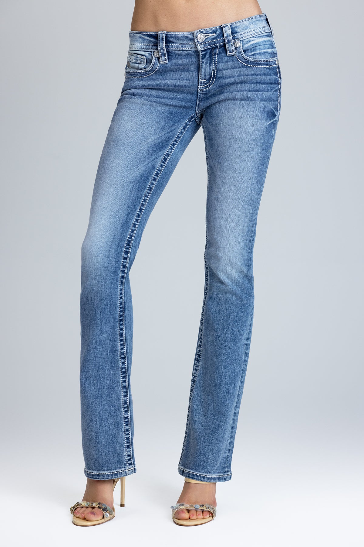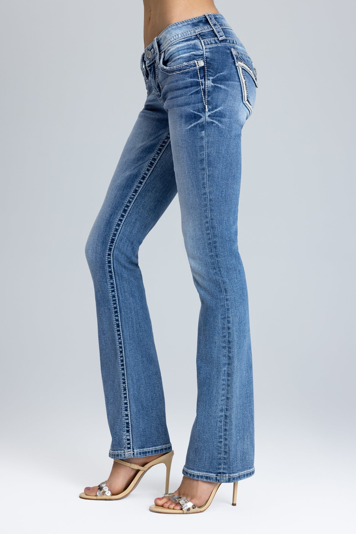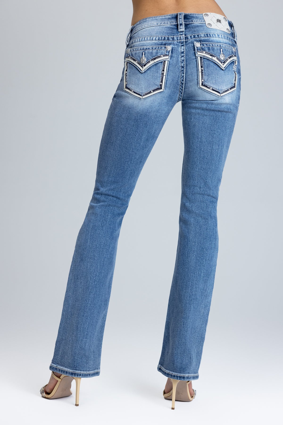 Halo Border Stitched Low Rise Bootcut Jeans