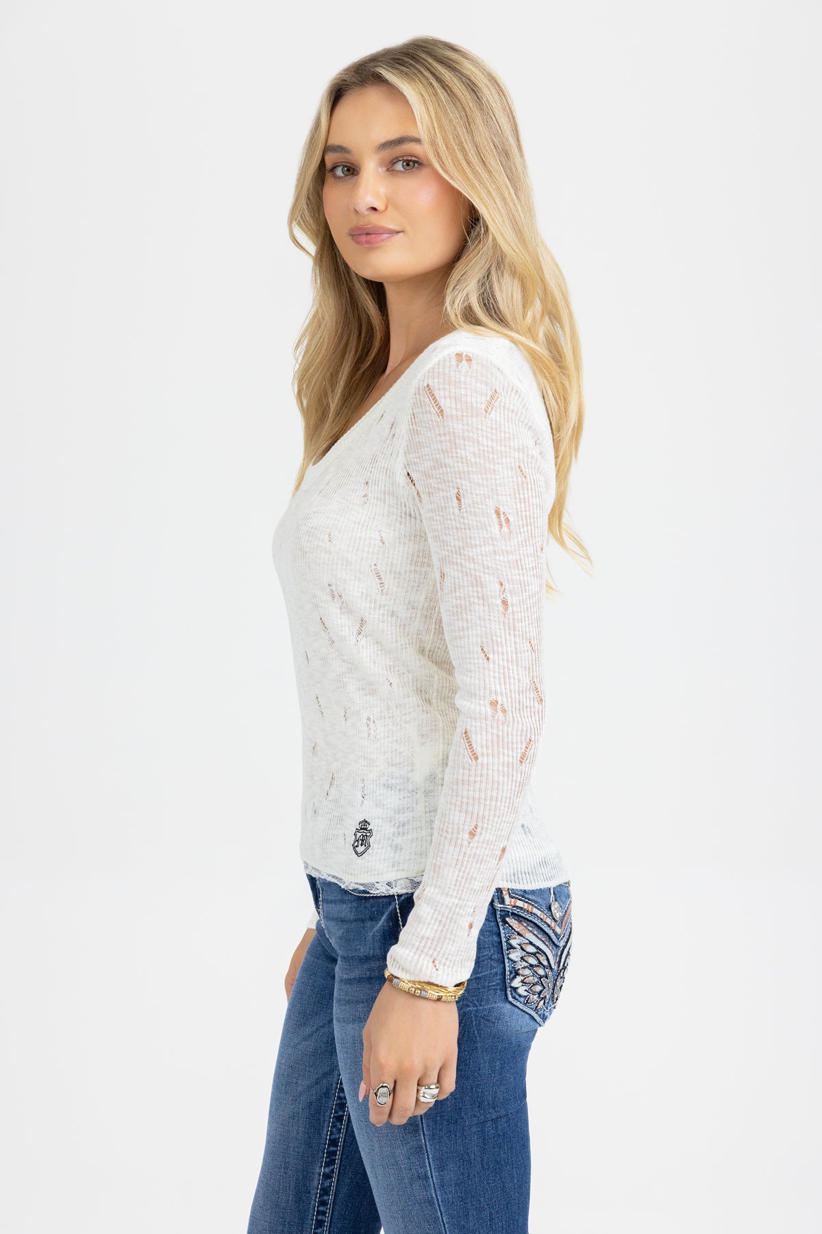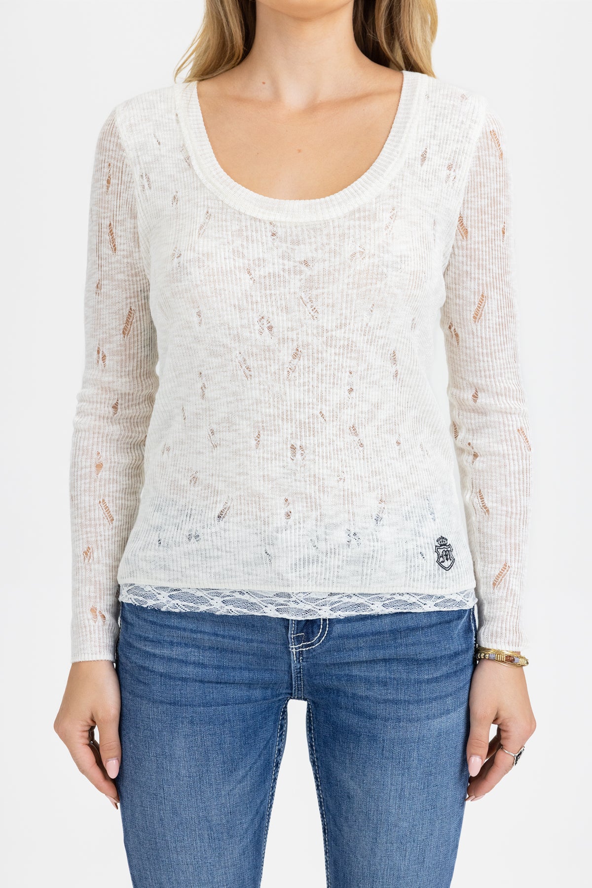 - Lace-trim underlayer detail
