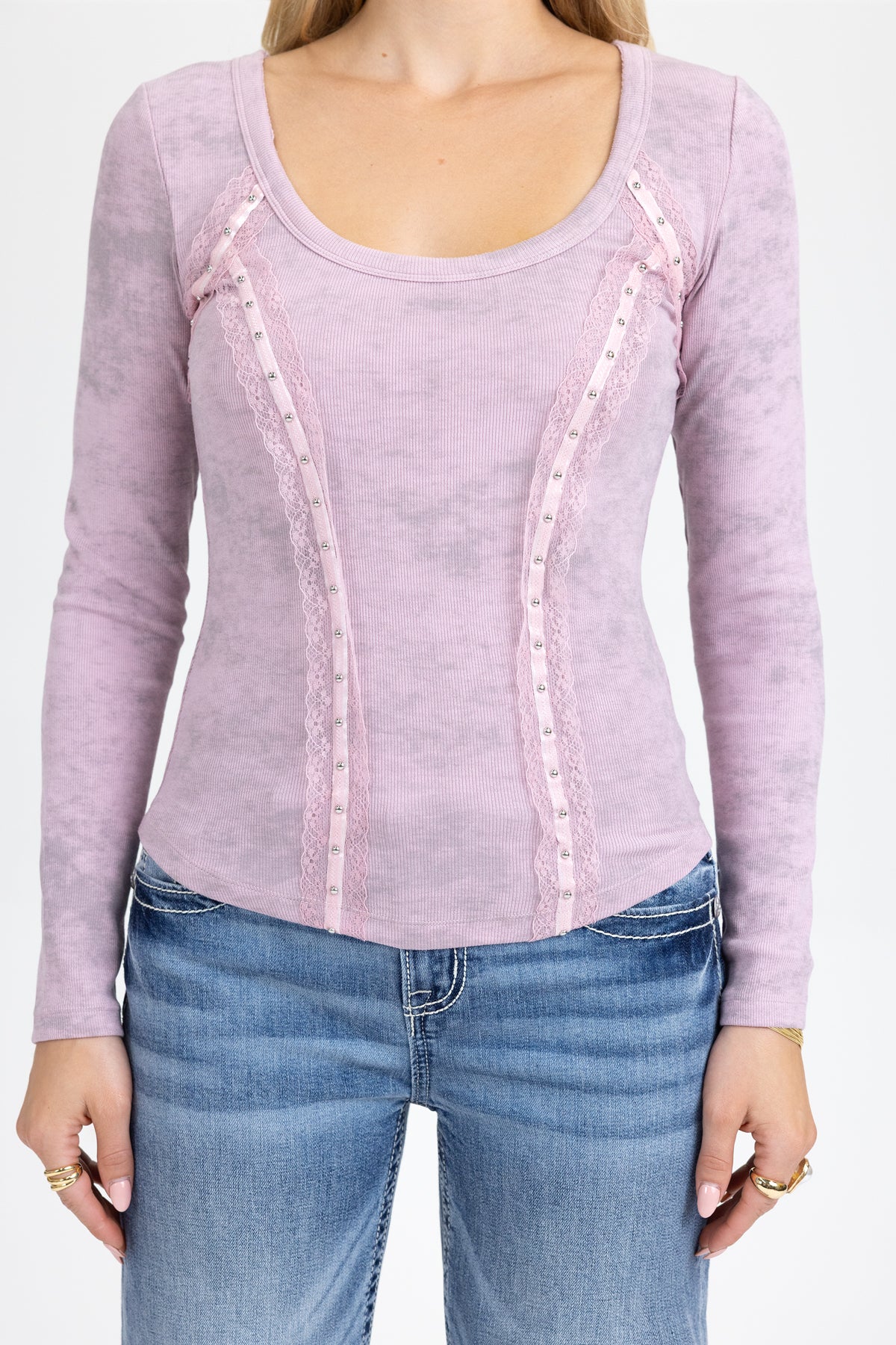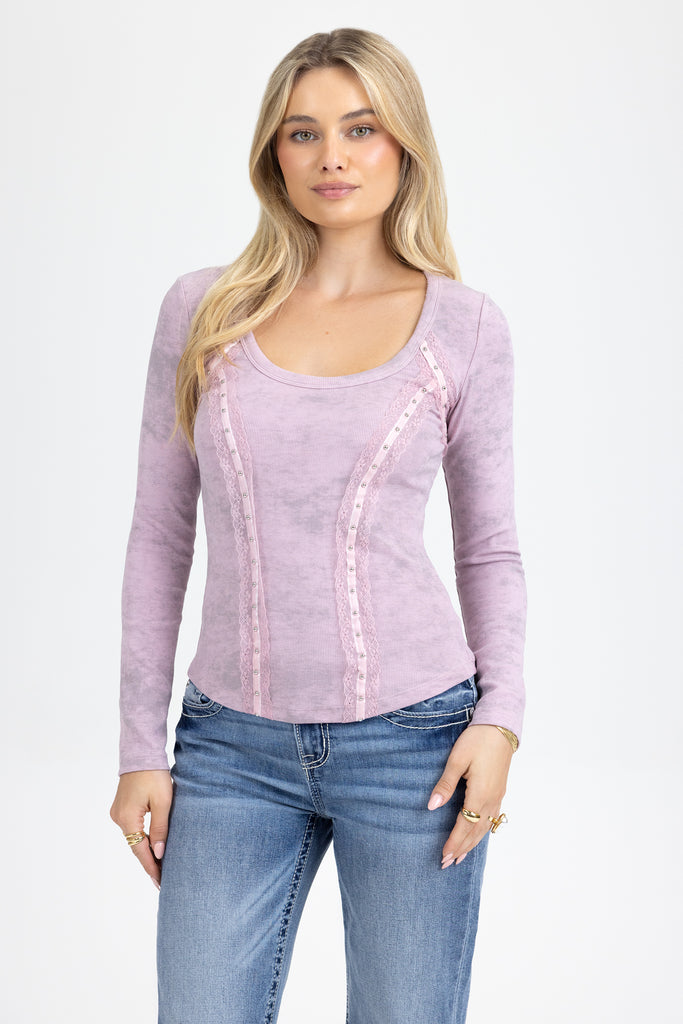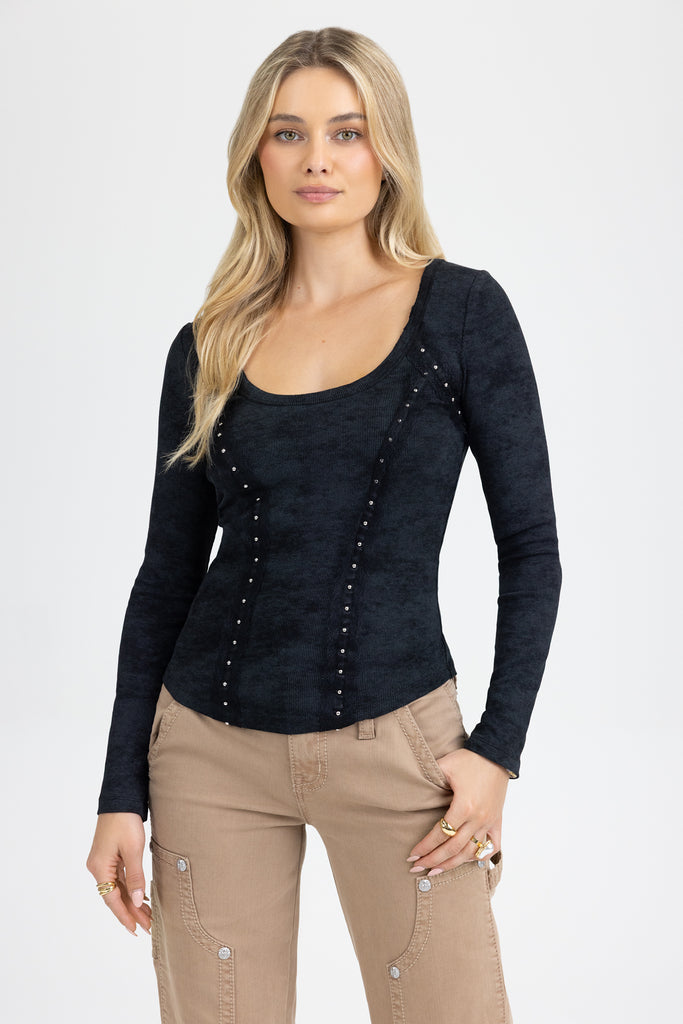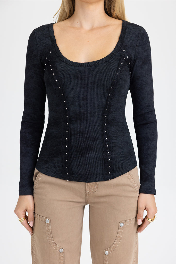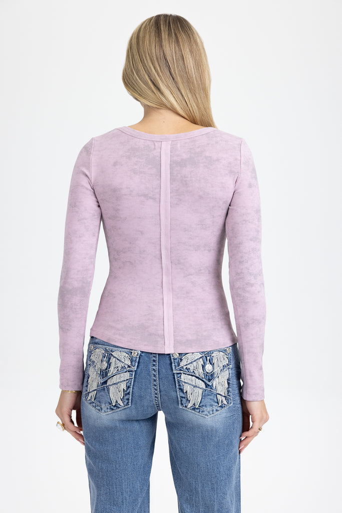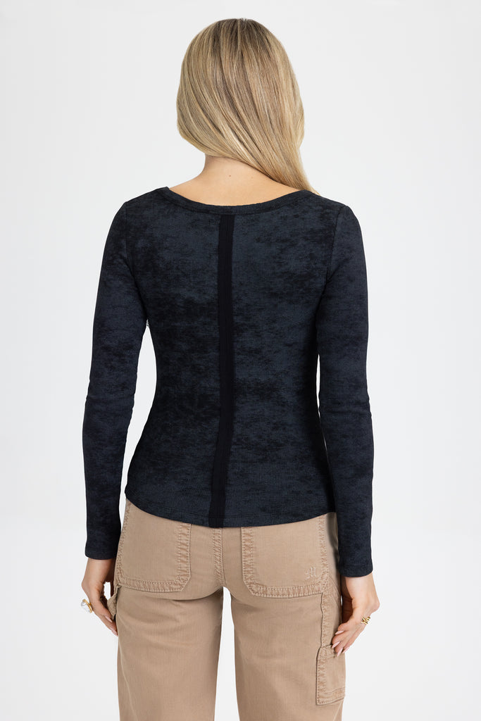 Fitted, acid-washed long-sleeve top