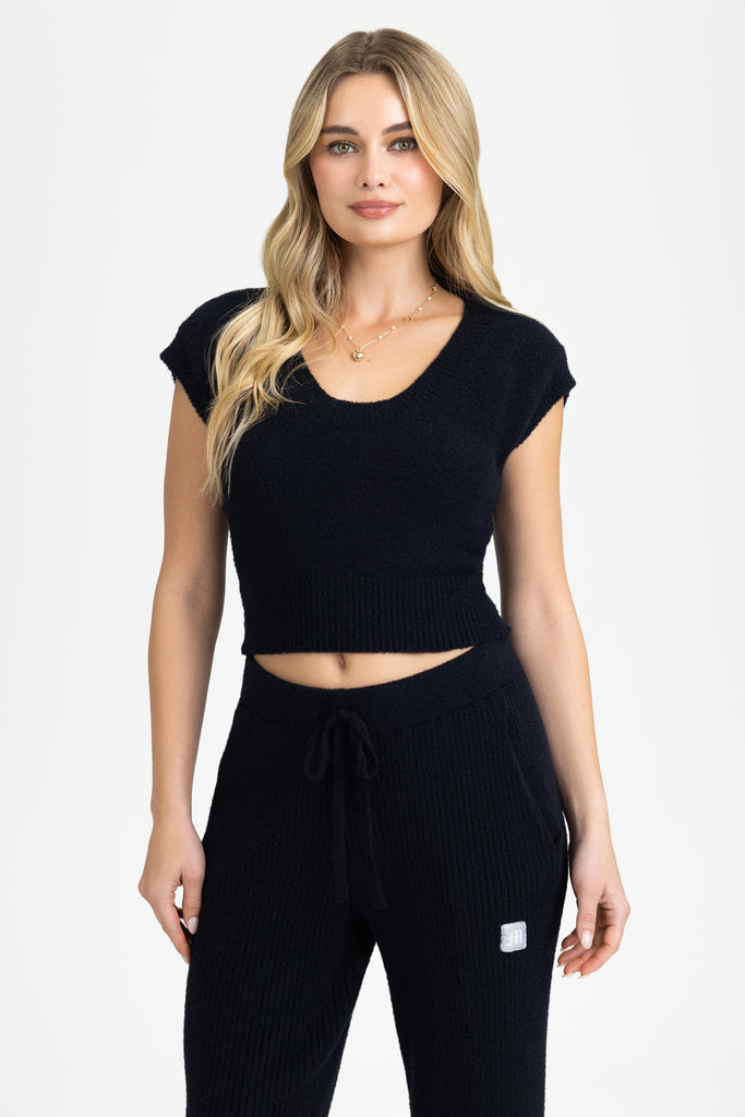 Fitted, cap-sleeve knit top
