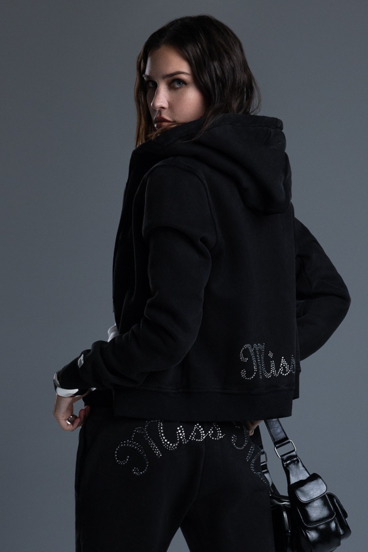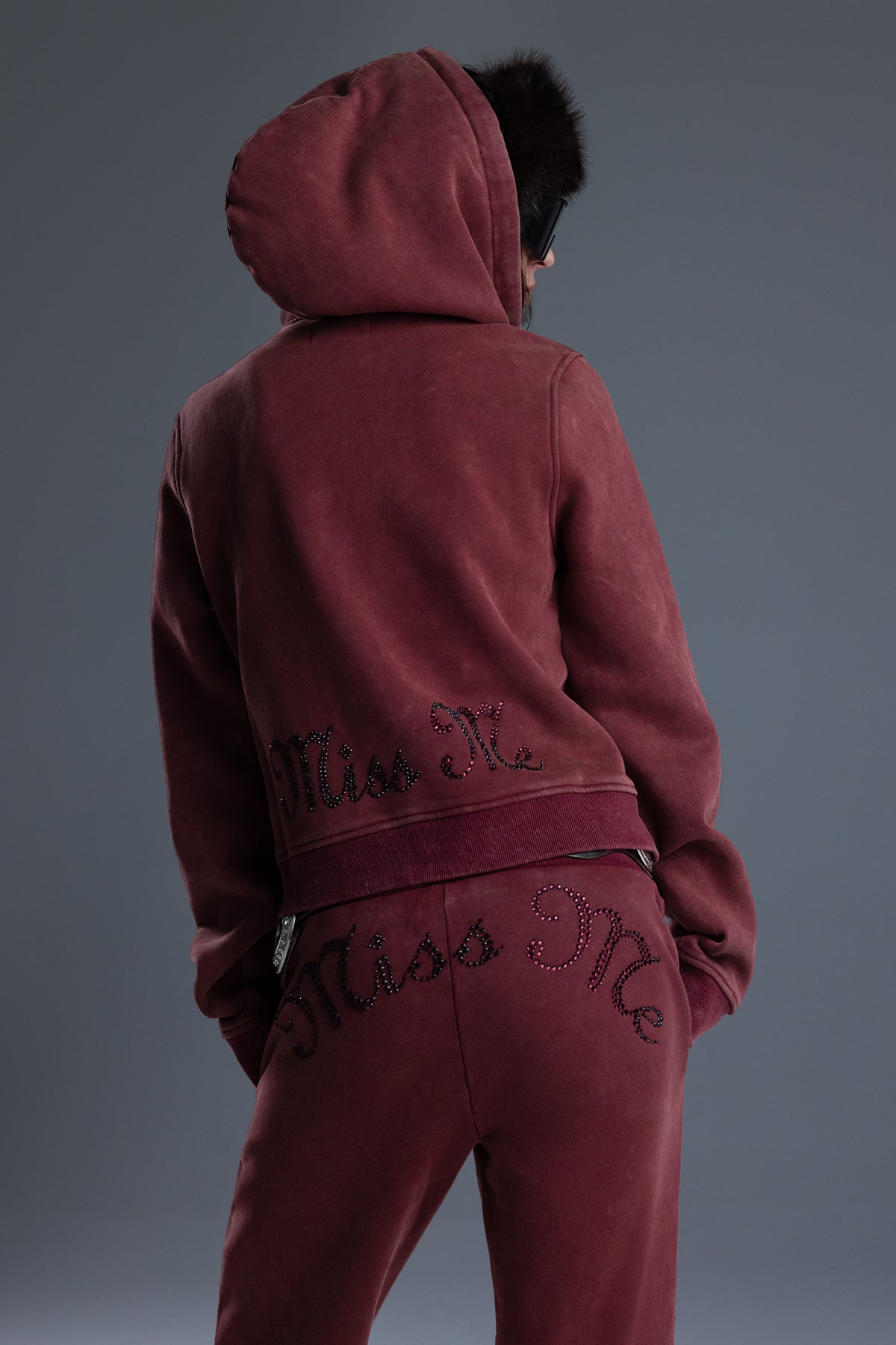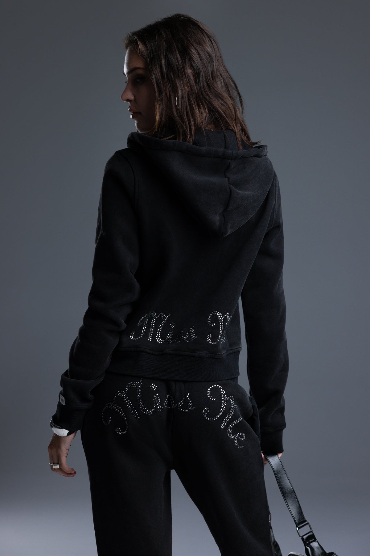 - Rhinestone-embellished Miss Me branding