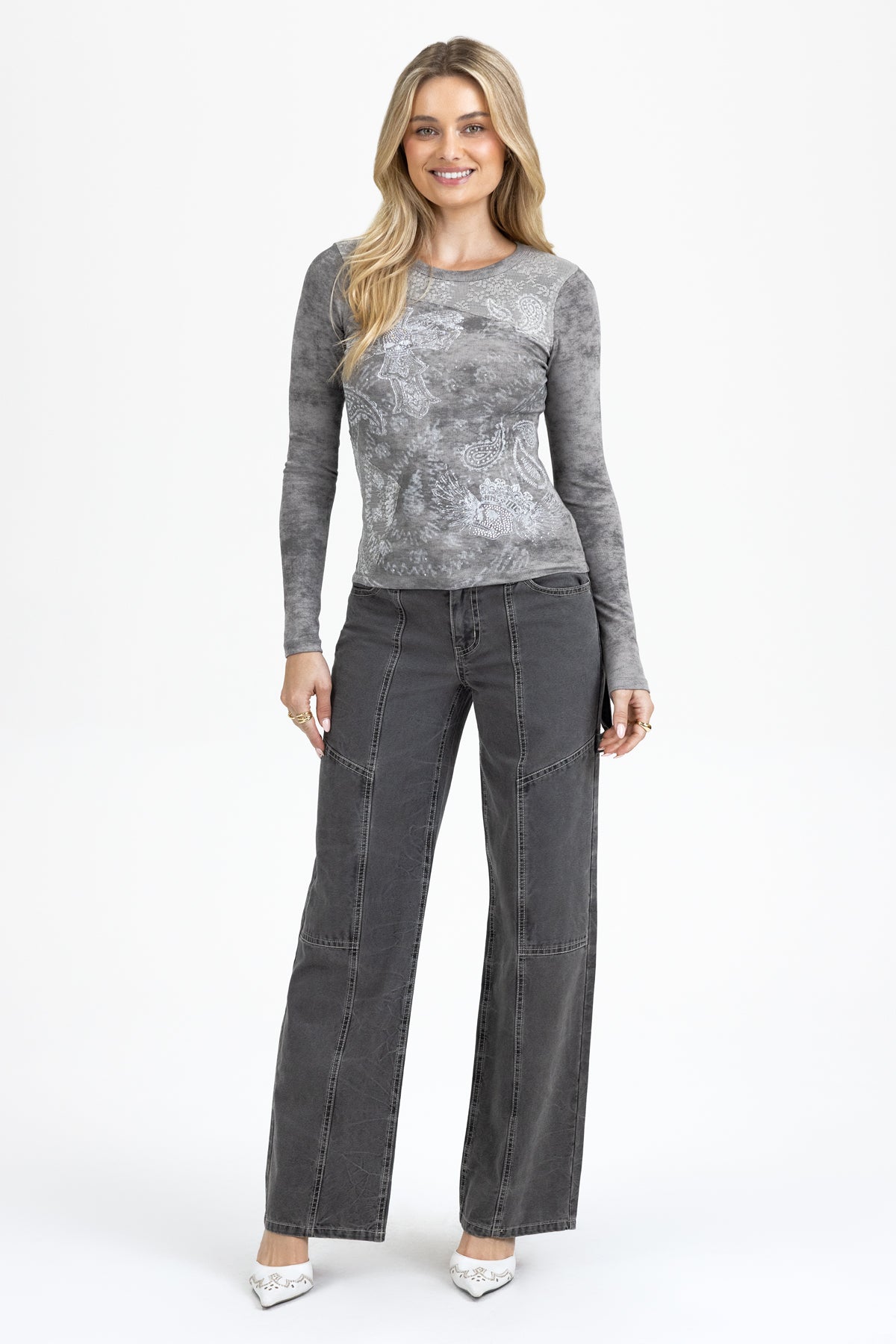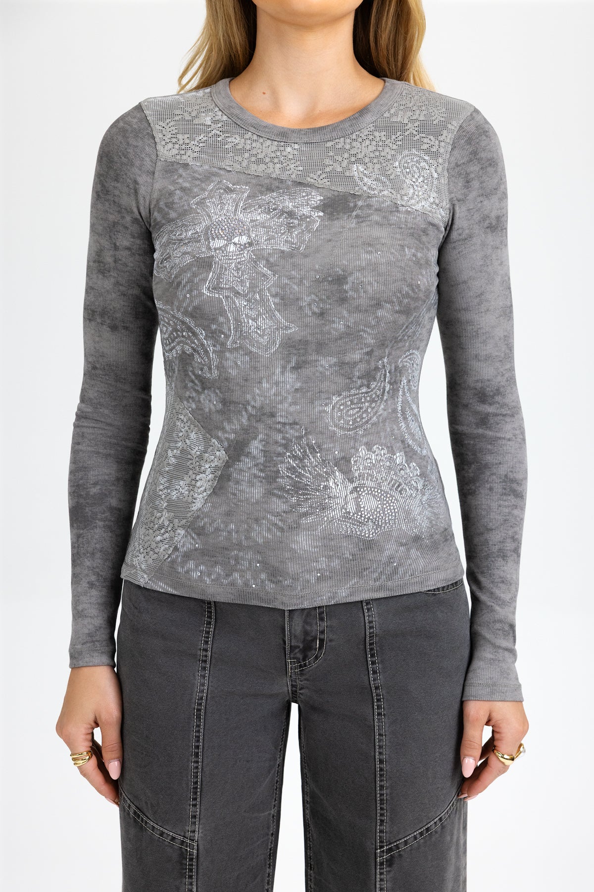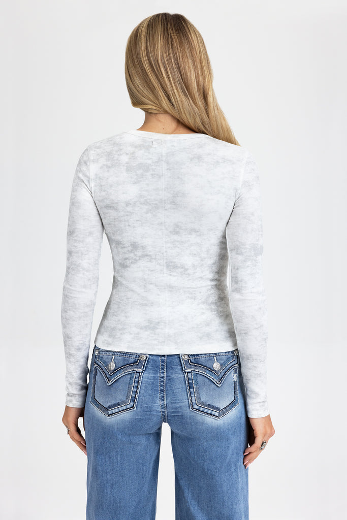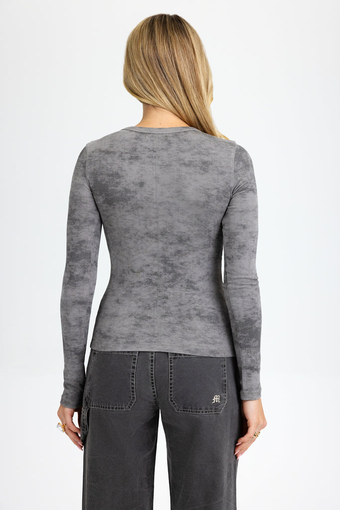 Ribbed, acid-washed long sleeve top