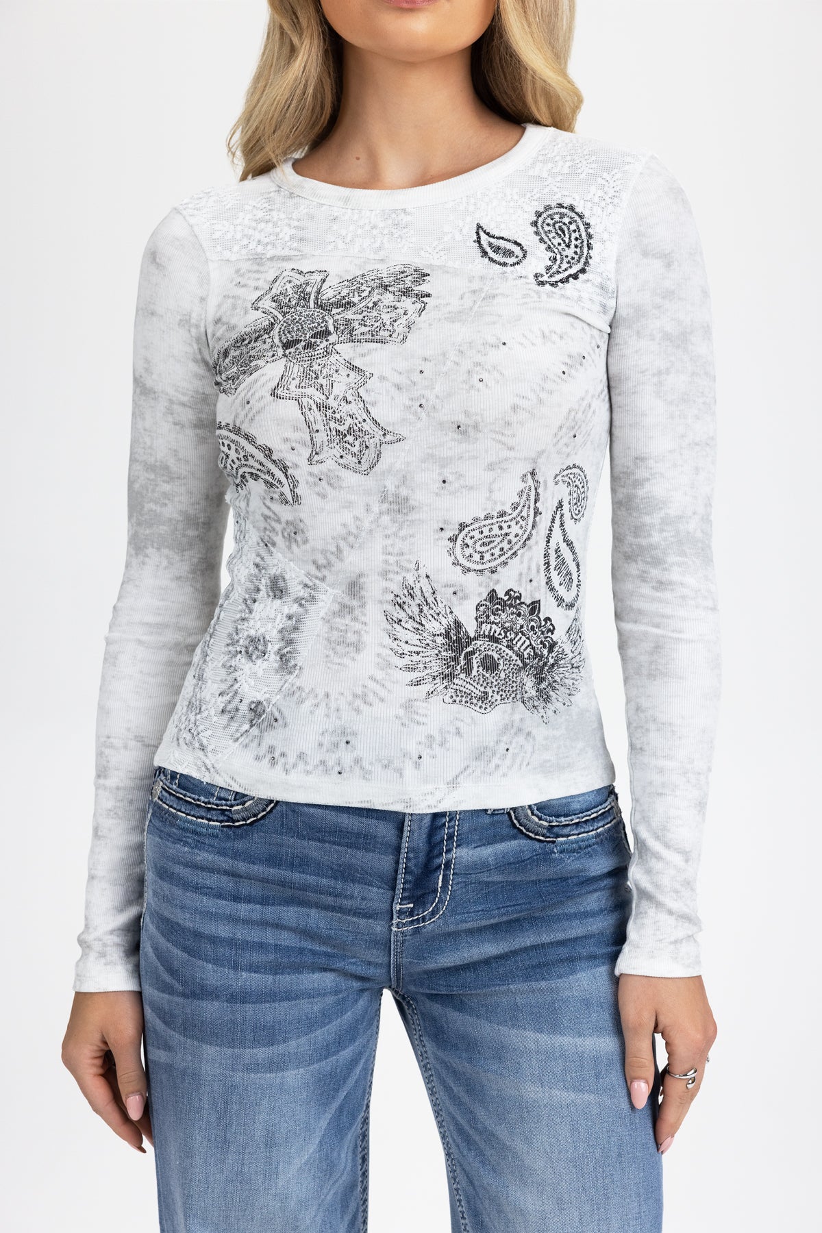 - Stitched paisley detailing
