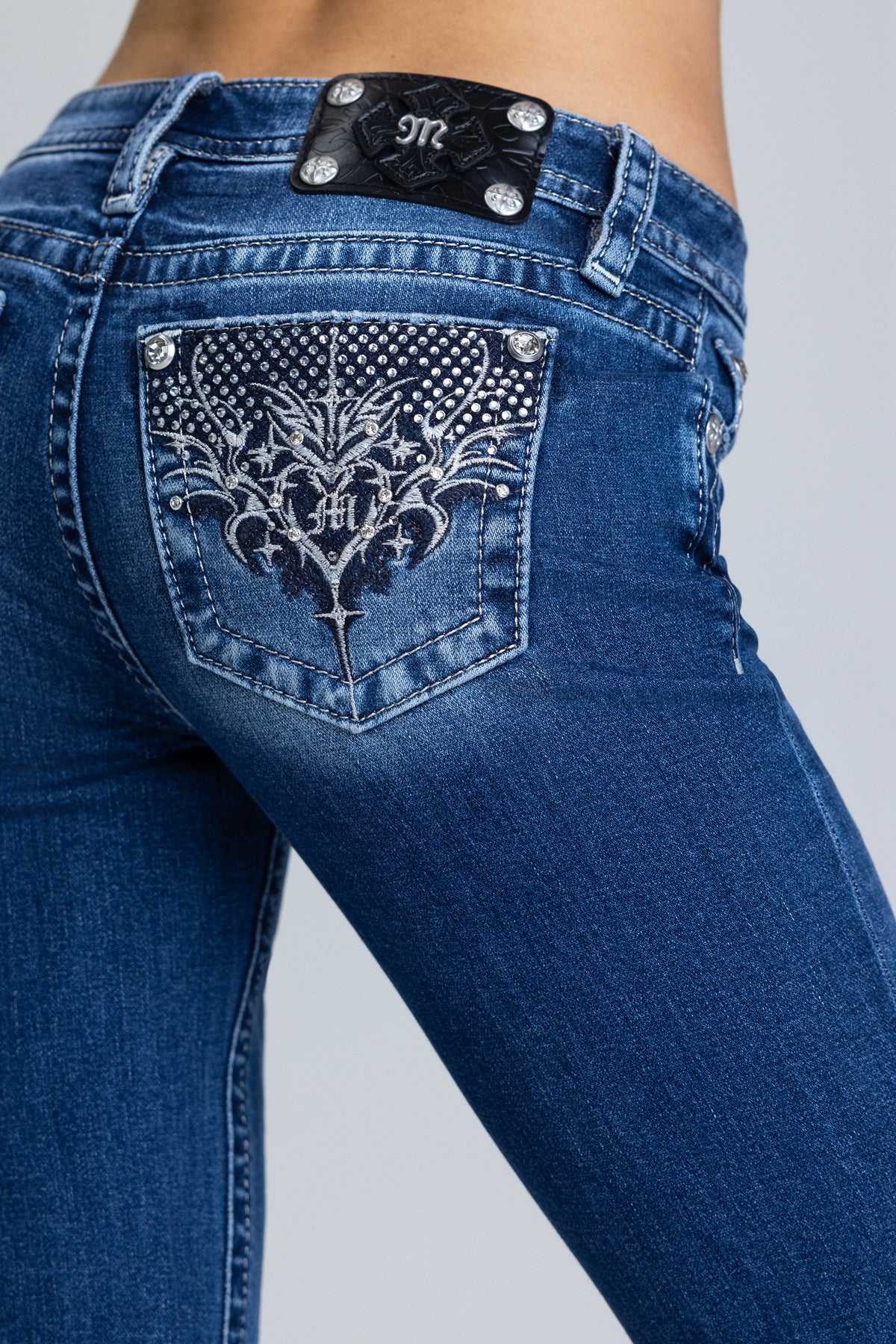 - Embossed black studded leather cross Miss me brand patch