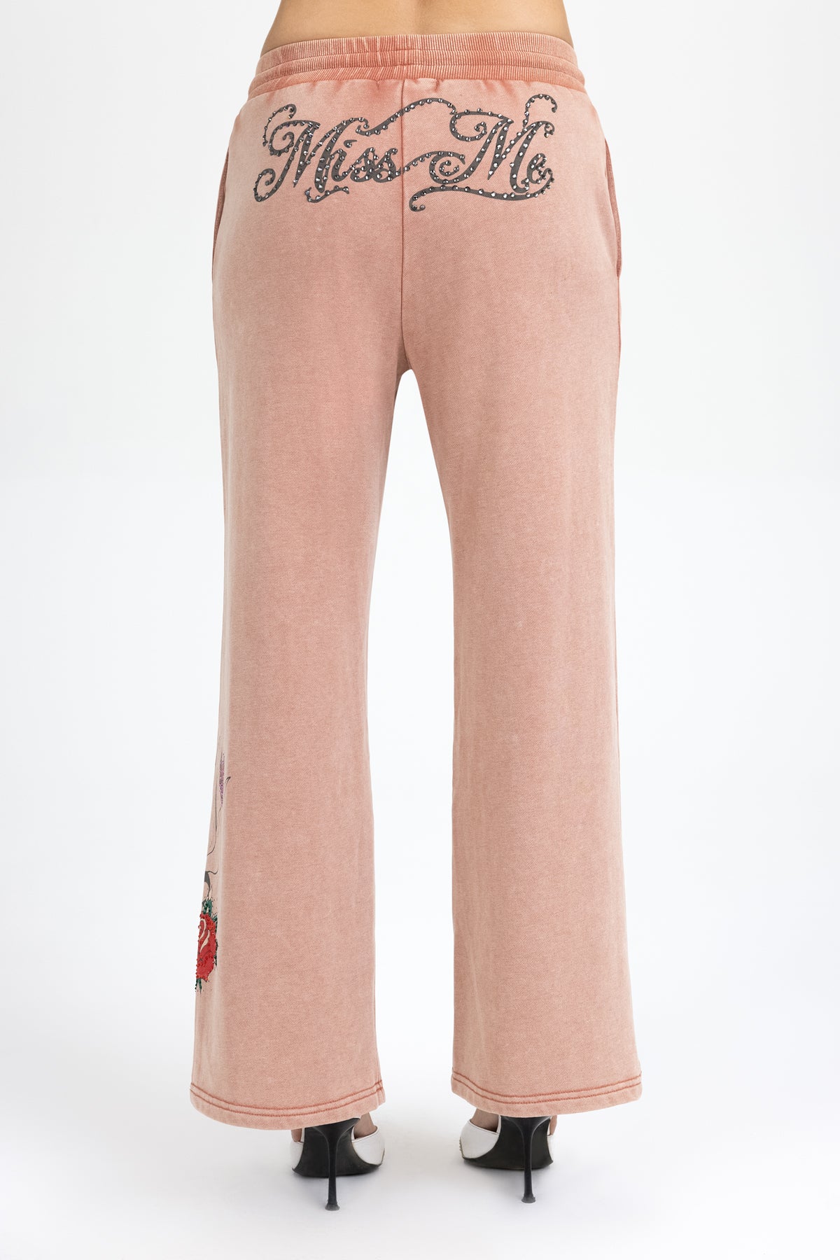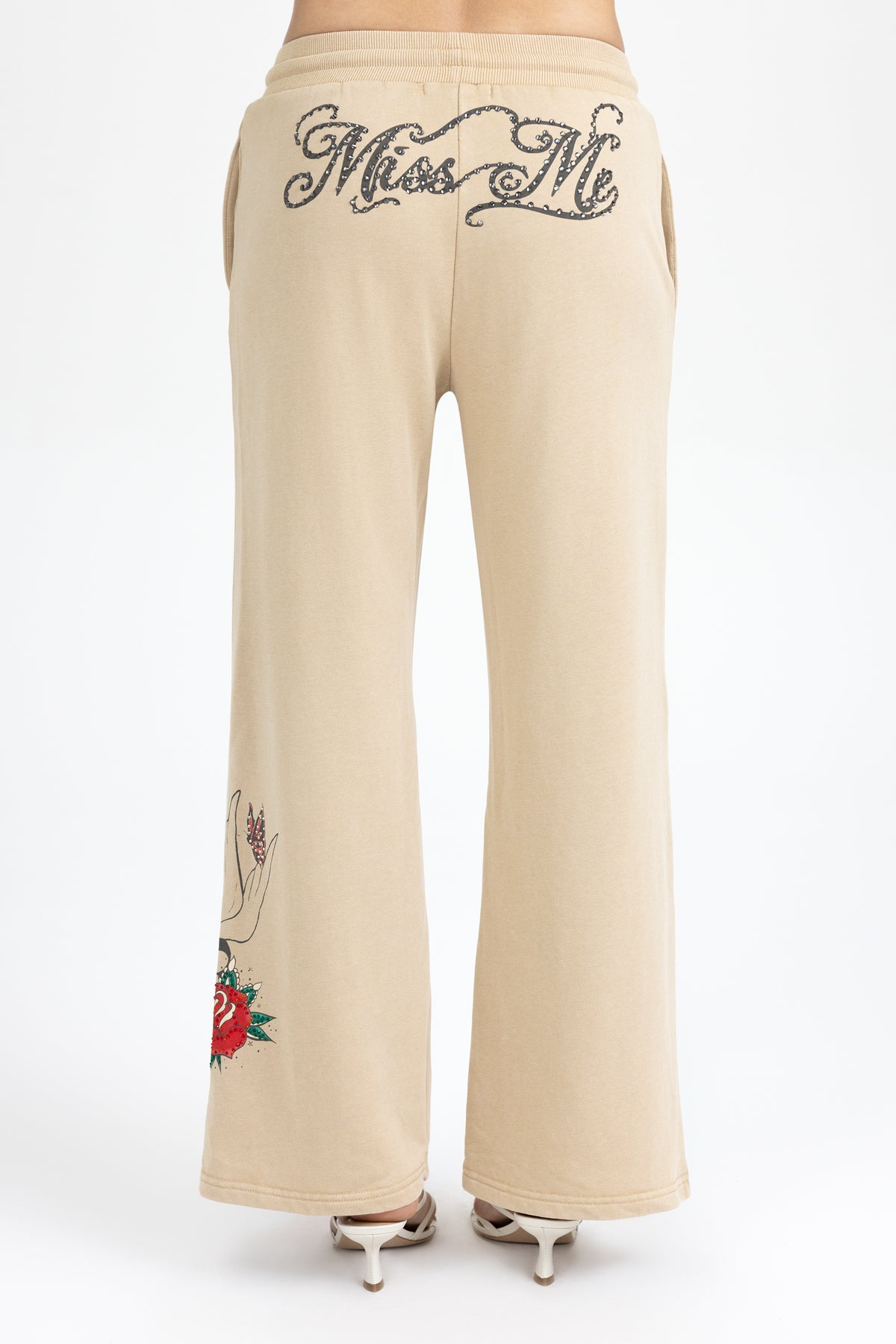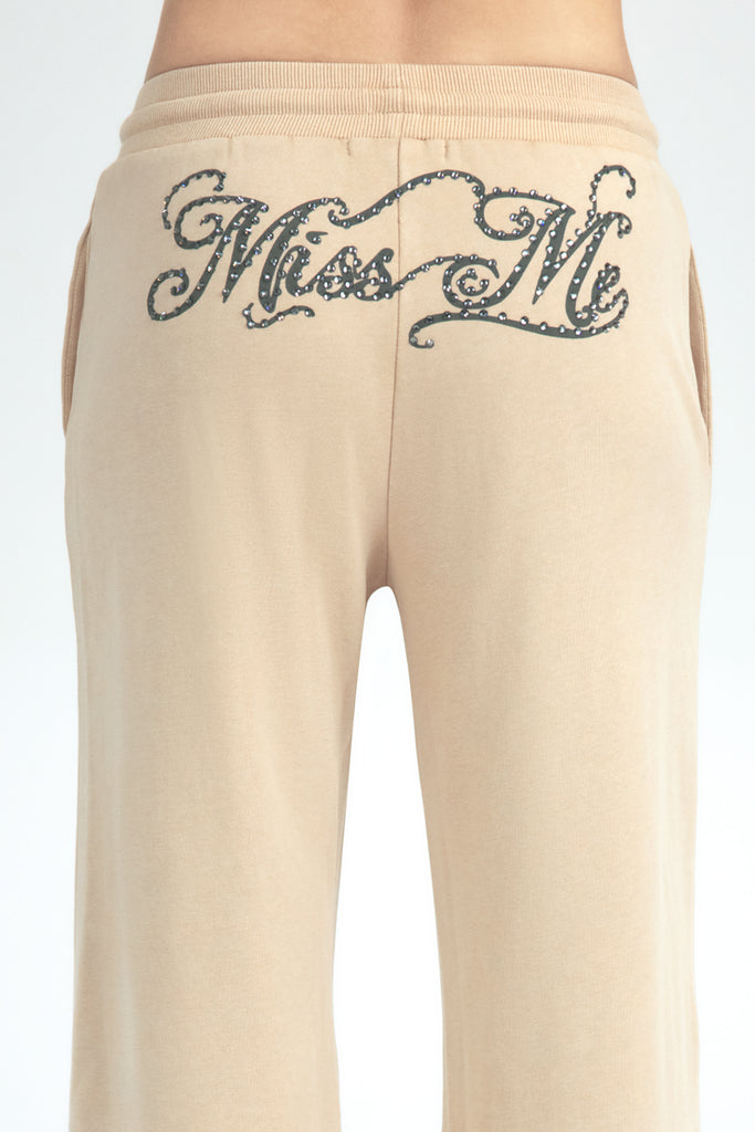 - Rhinestone-embellished Miss Me script branding