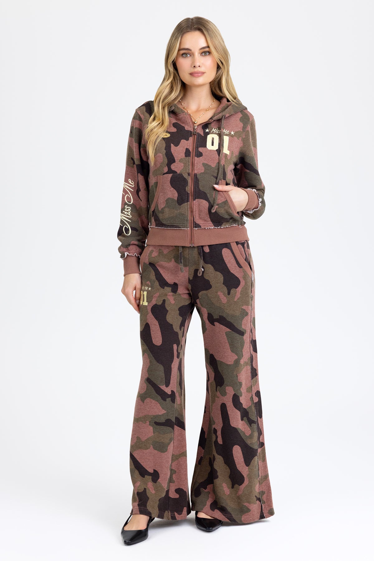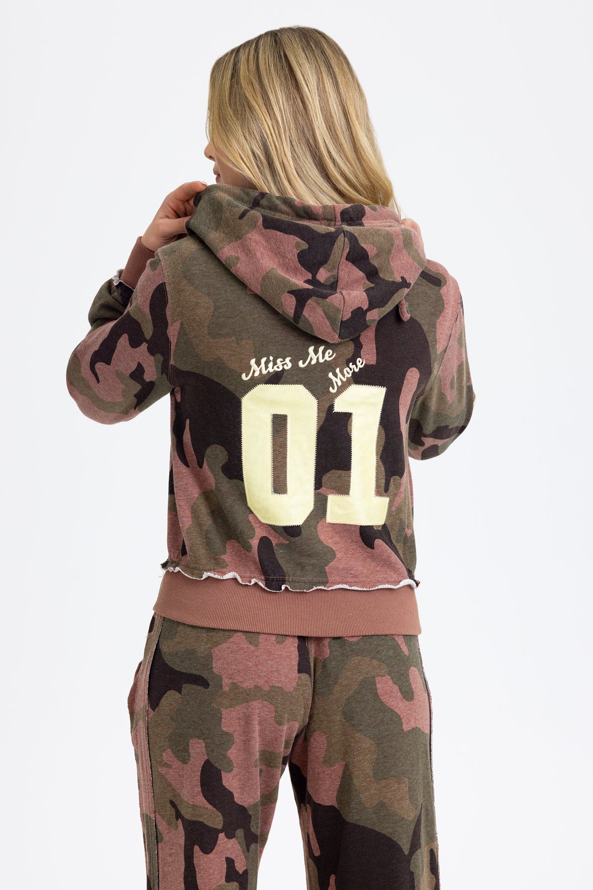 - Embroidered "Miss Me 01" branding