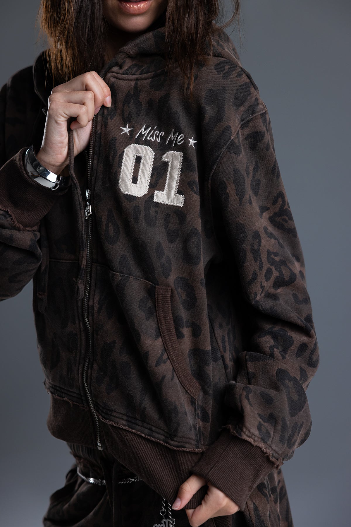 - Embroidered "Miss Me 01" branding