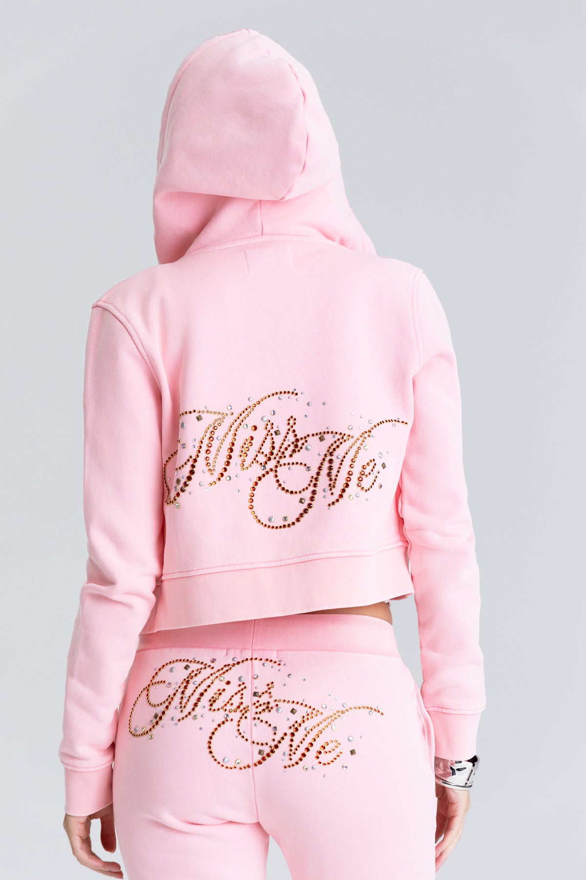 - Rhinestone Miss Me script embellishment