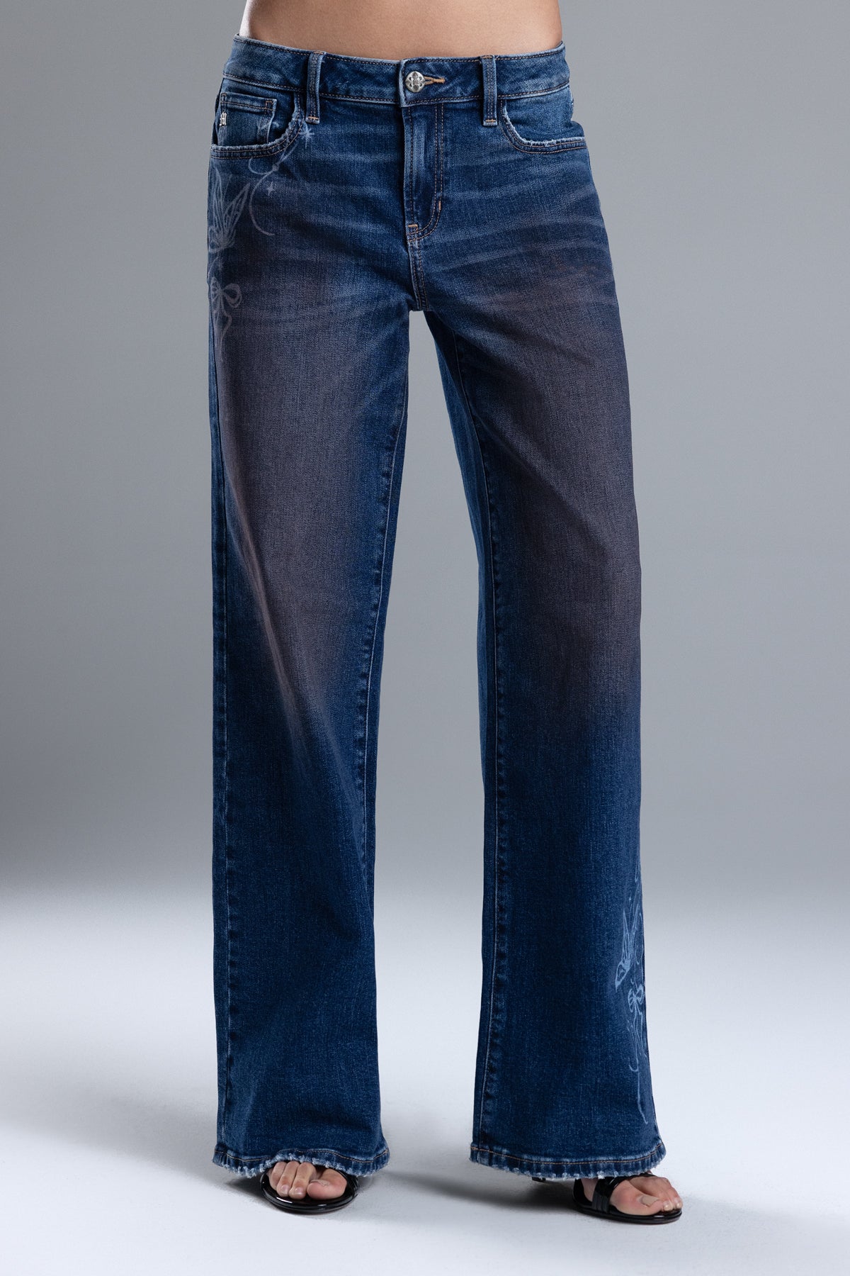 - Embroidered mini gothic Miss Me logo back pocket design